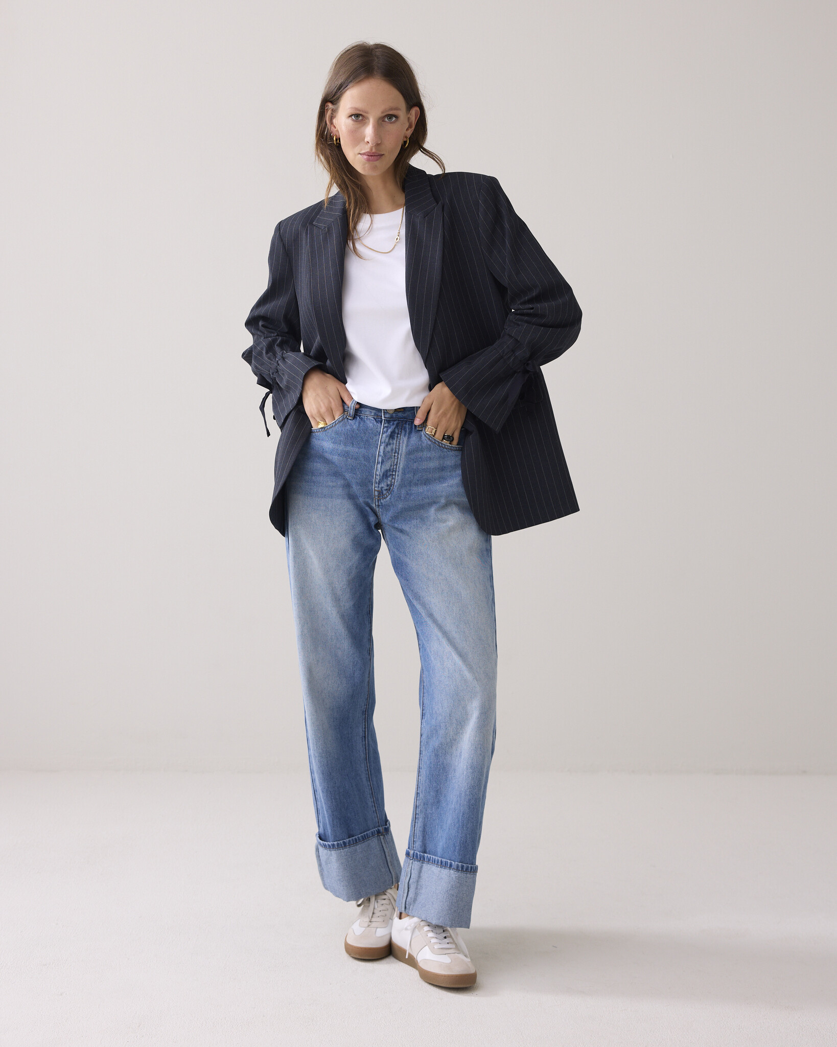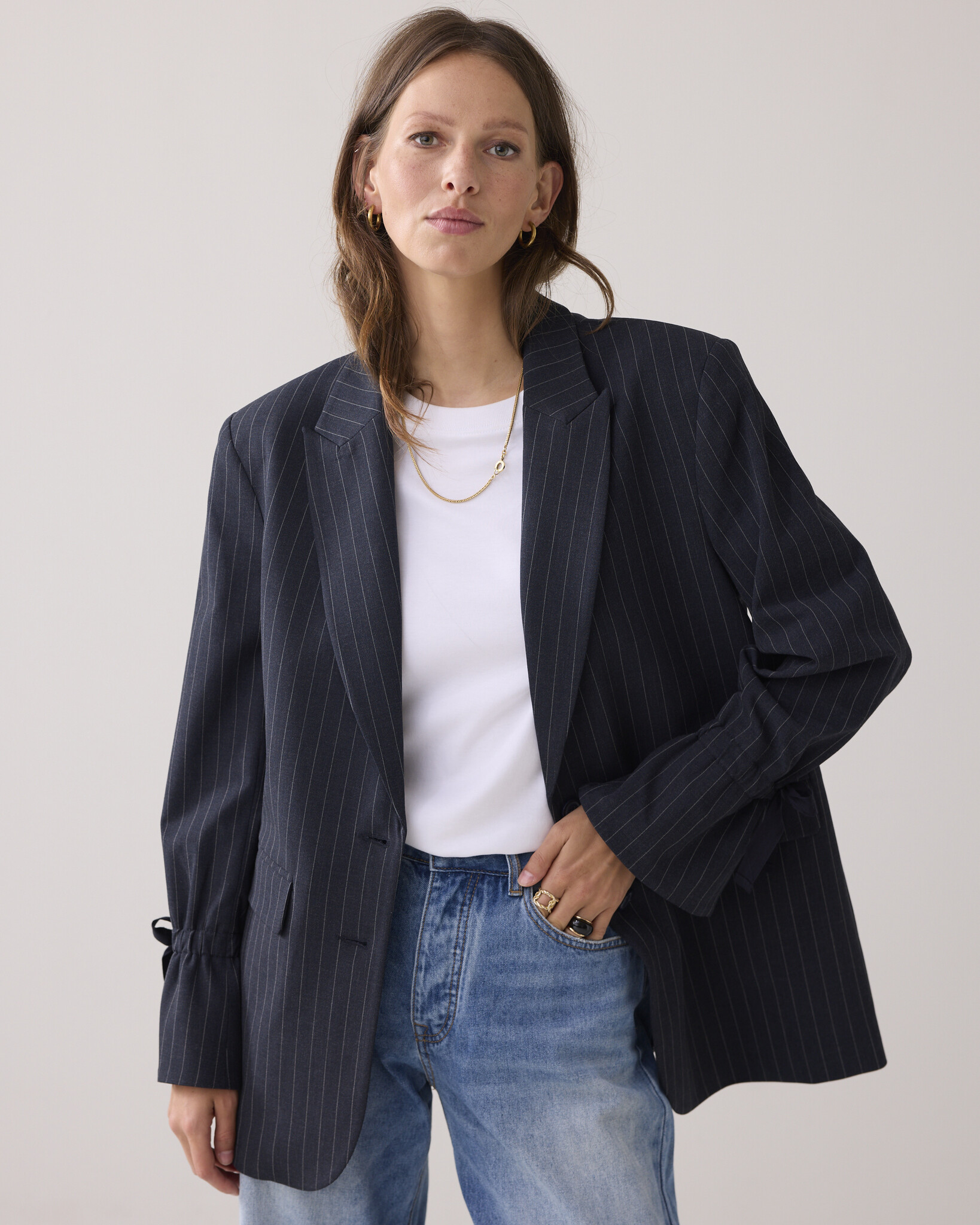 1s1263-12258 495 Summum Blazer boyfriend Pinstripe Midnight blue