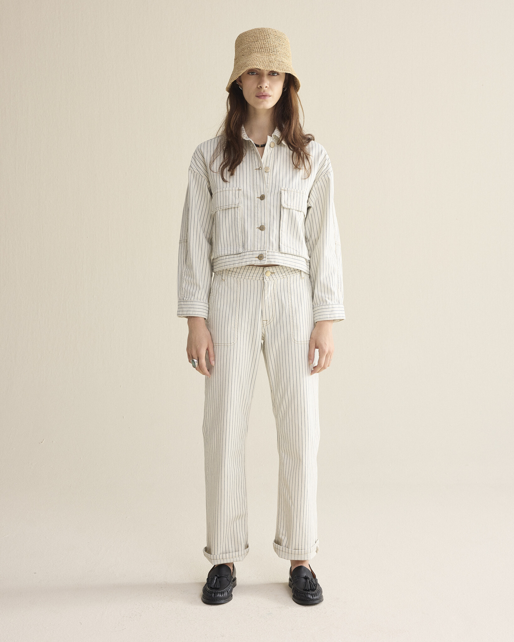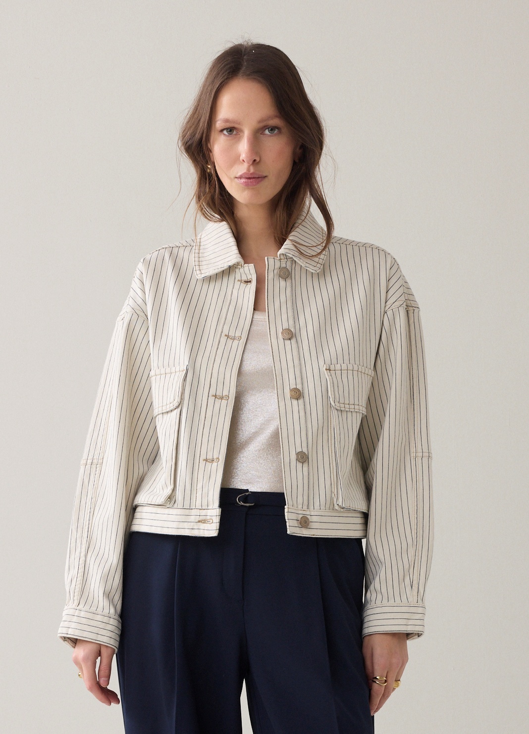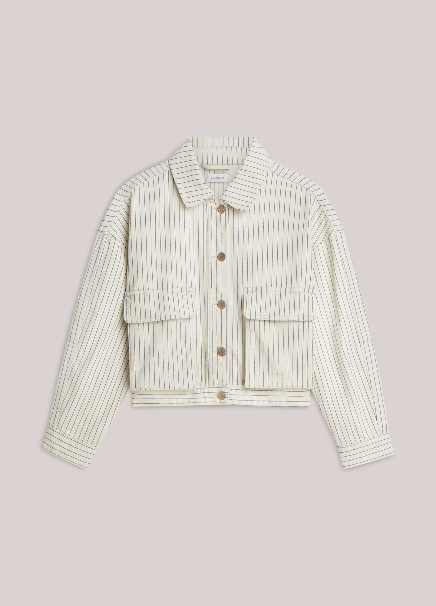 1s1289-12403 122 Summum Boxy jacket Yarn dyed stripe Ivory