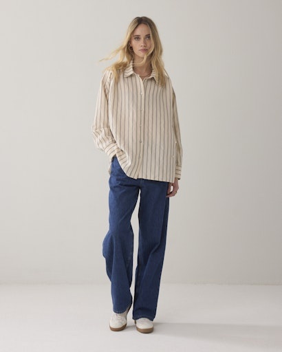 2s3455-12374 107 Summum Blouse adjustable Chenille stripe Ivorymidnightblue
