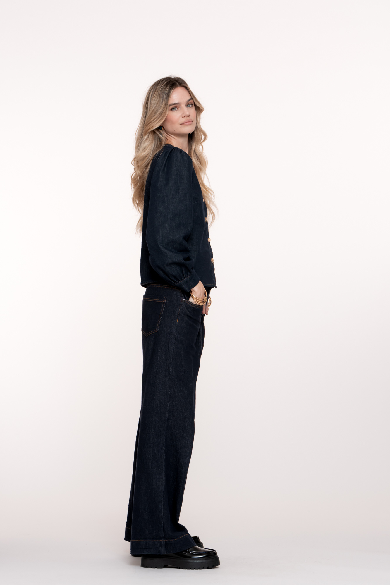 51521-10 880 Geisha Jeans flair dark blue denim stonewash