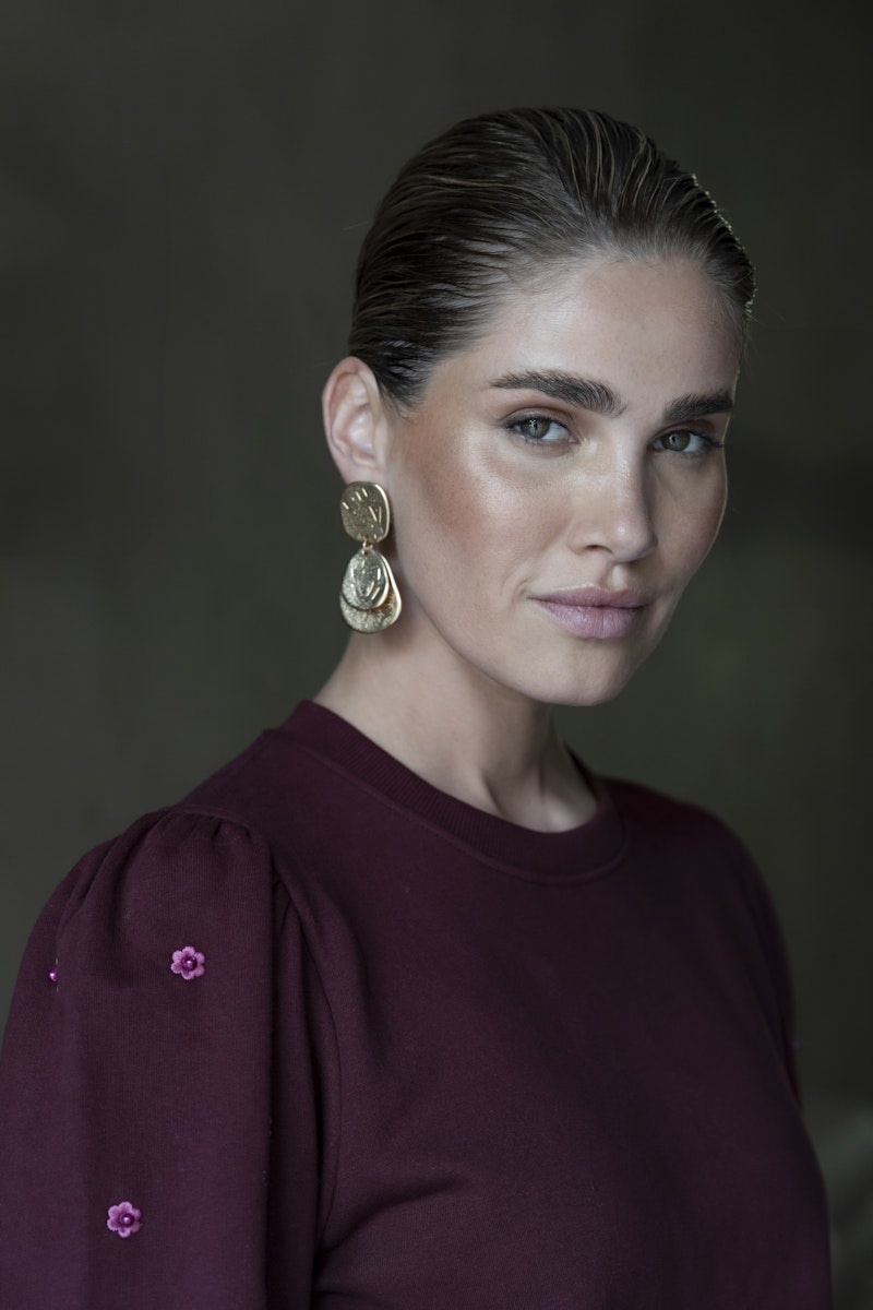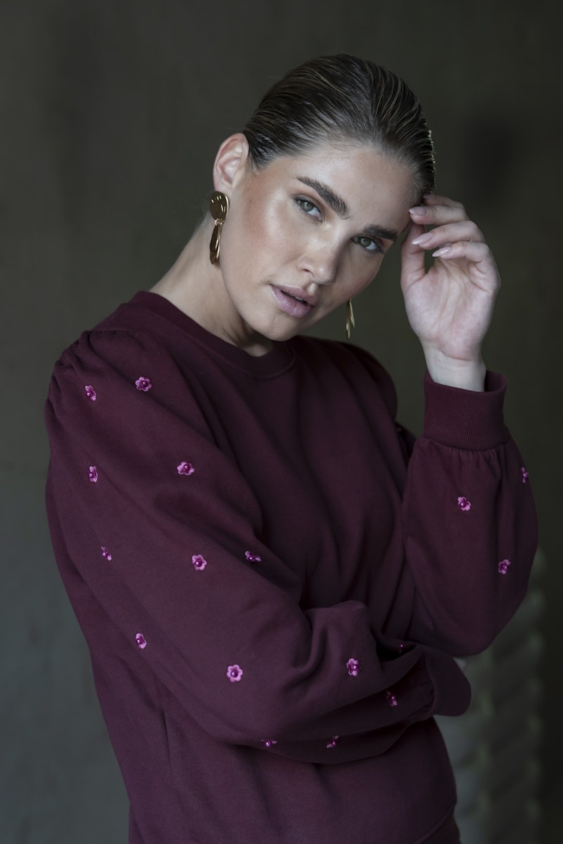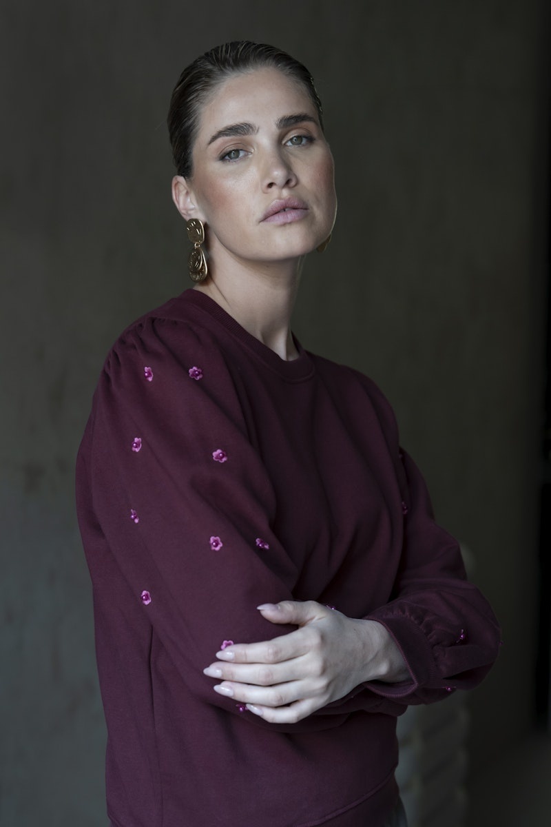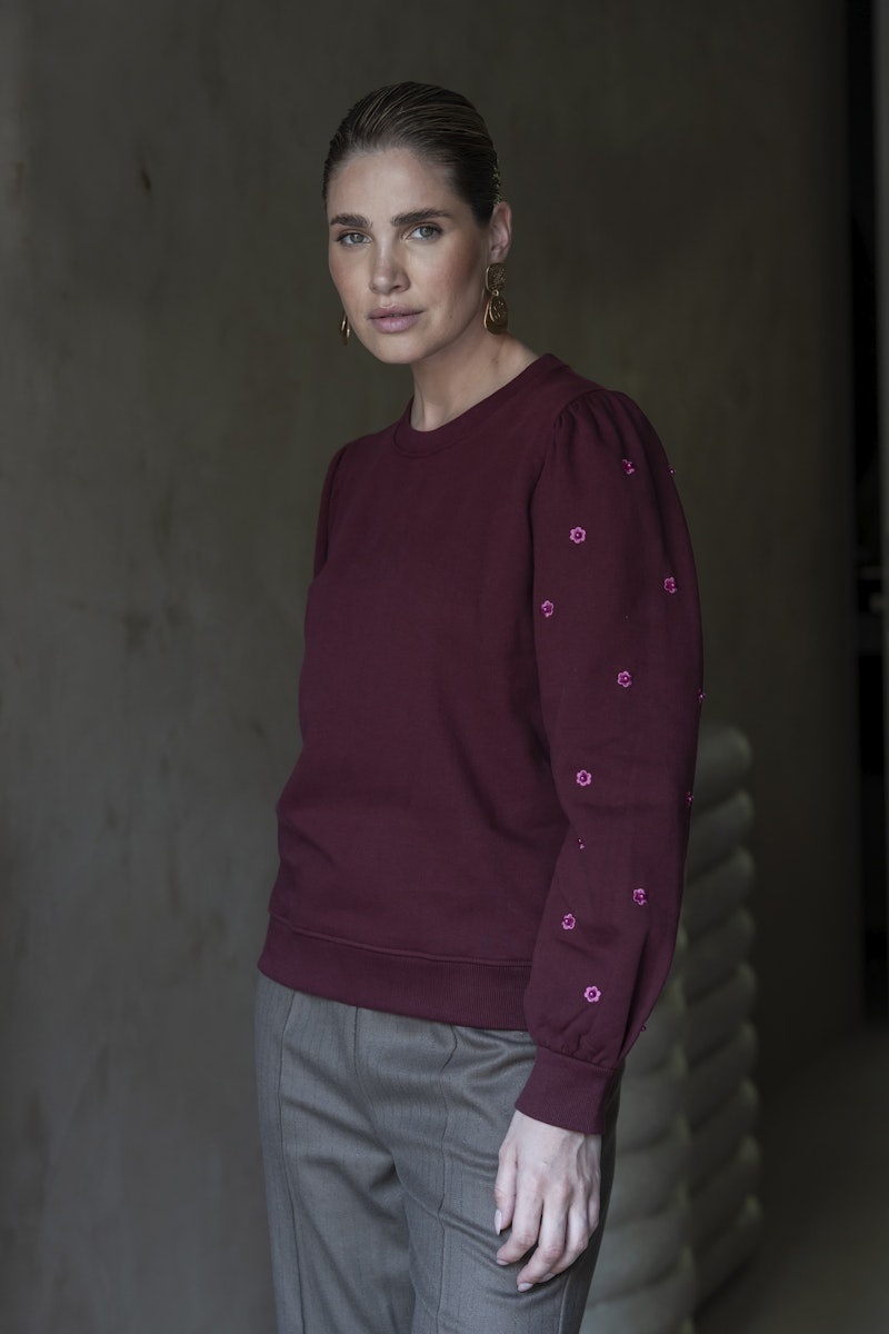 52870-21 485 Geisha Sweater with pearls port/pink