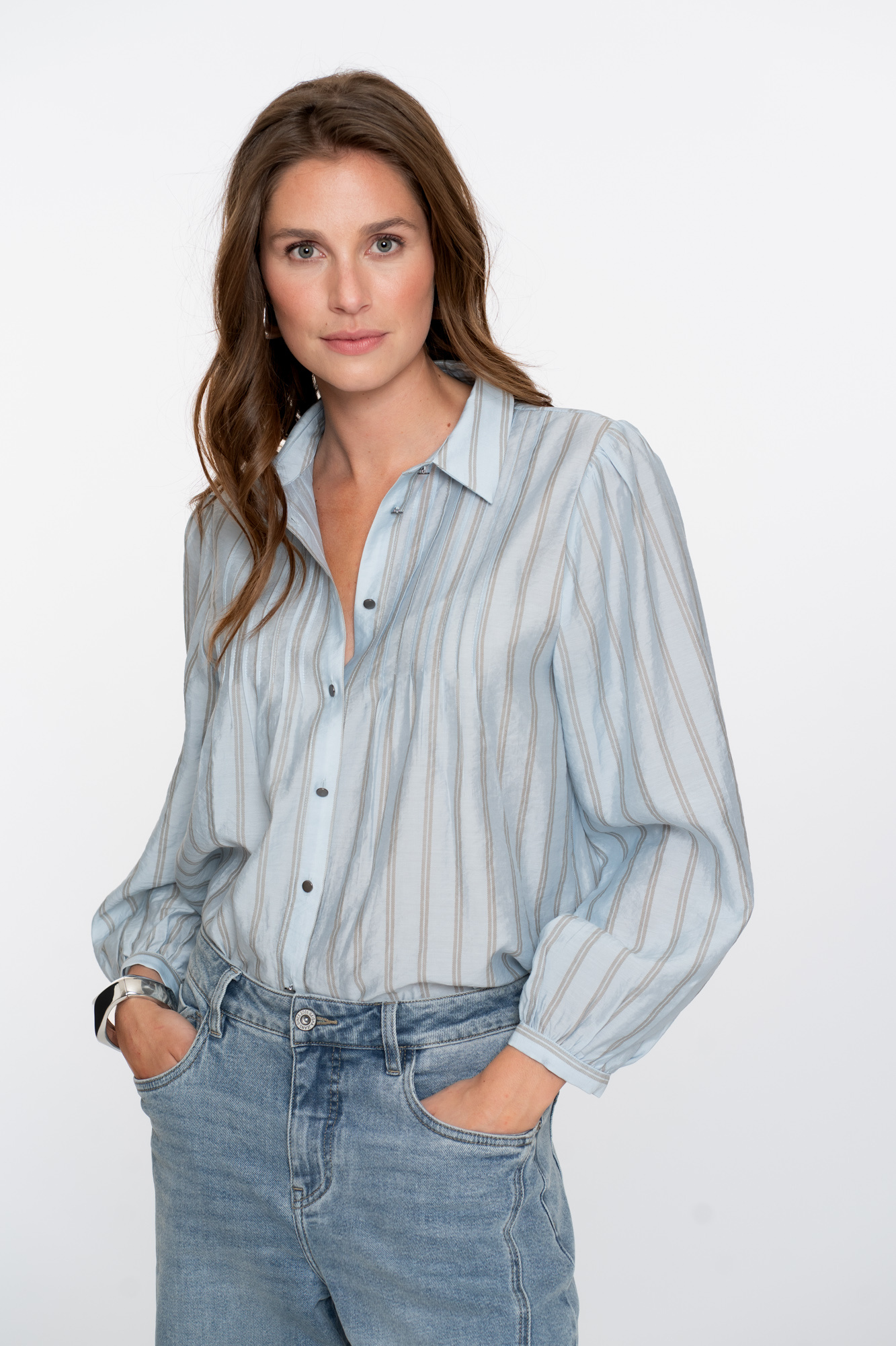 53535-14 600 Geisha Blouse stripes light blue/greige