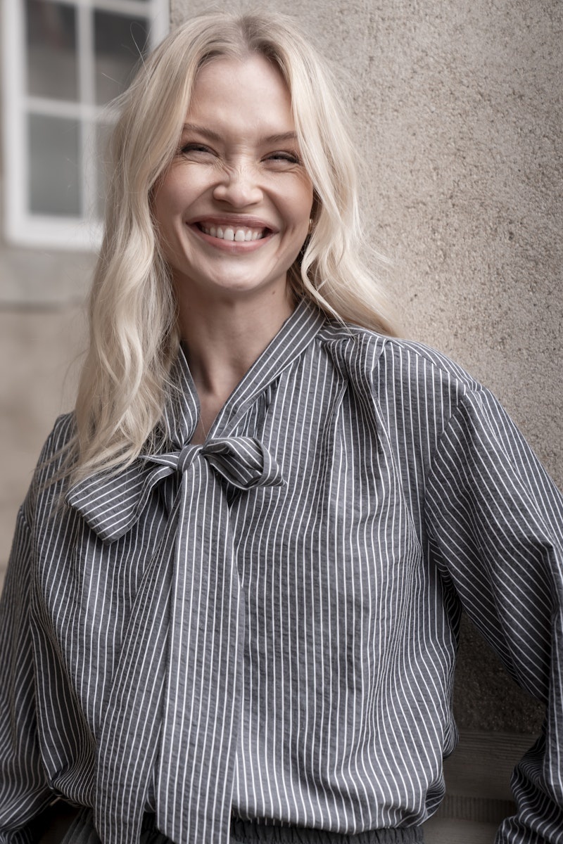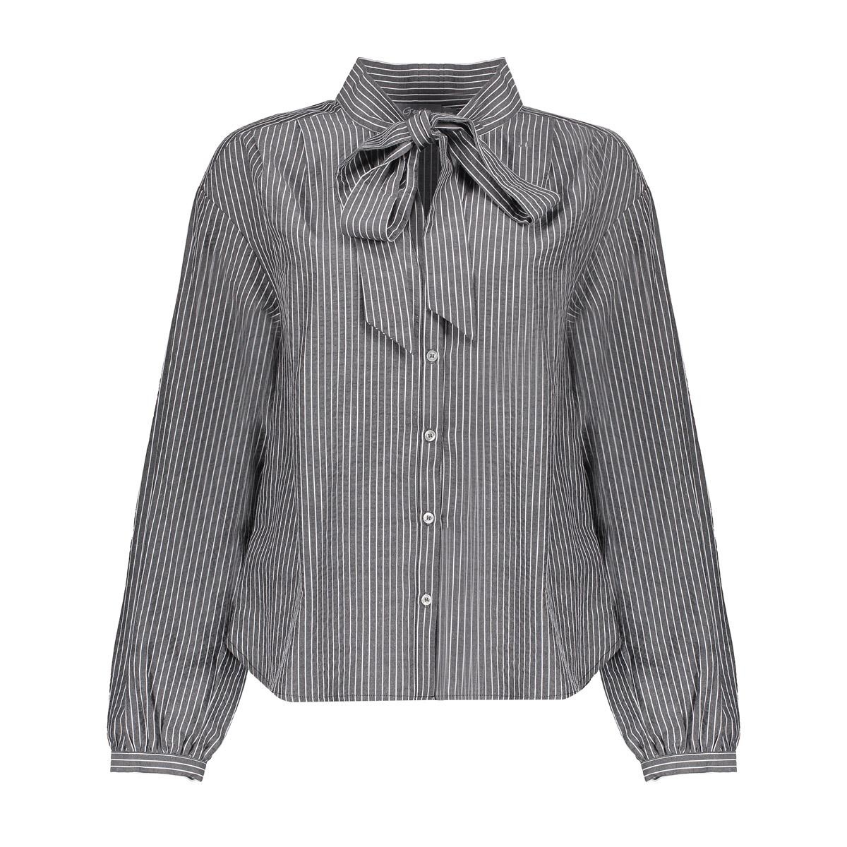 53537-14 925 Geisha Blouse stripes with bow grey/white