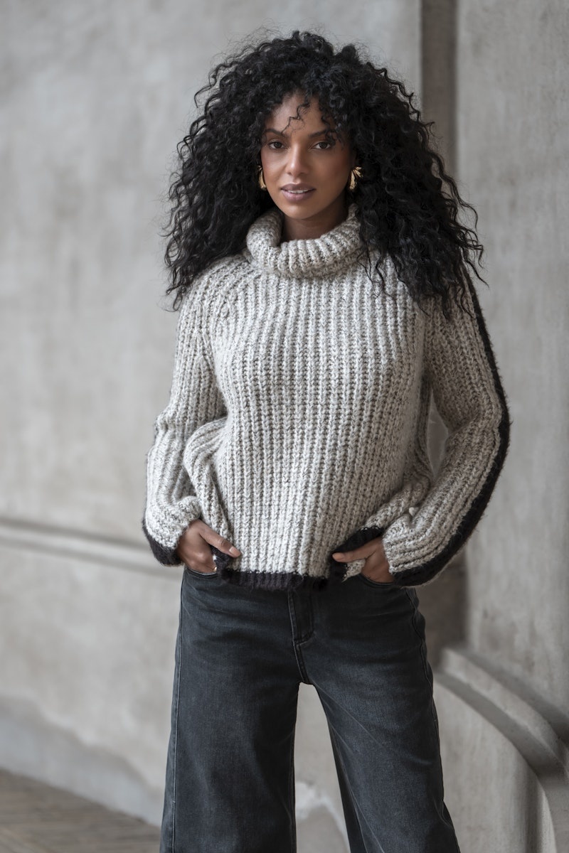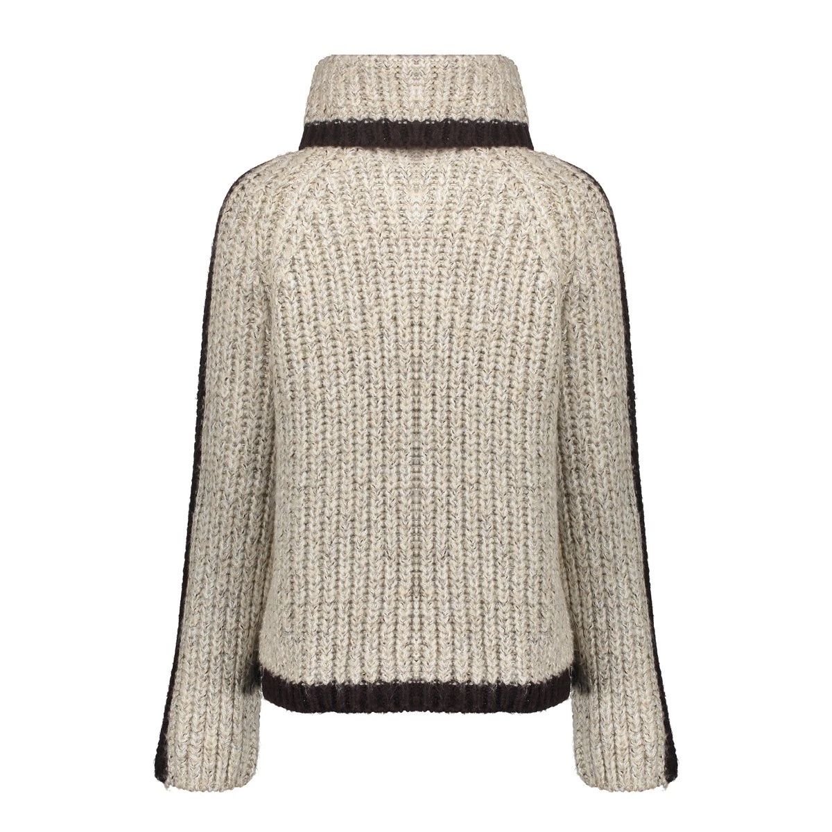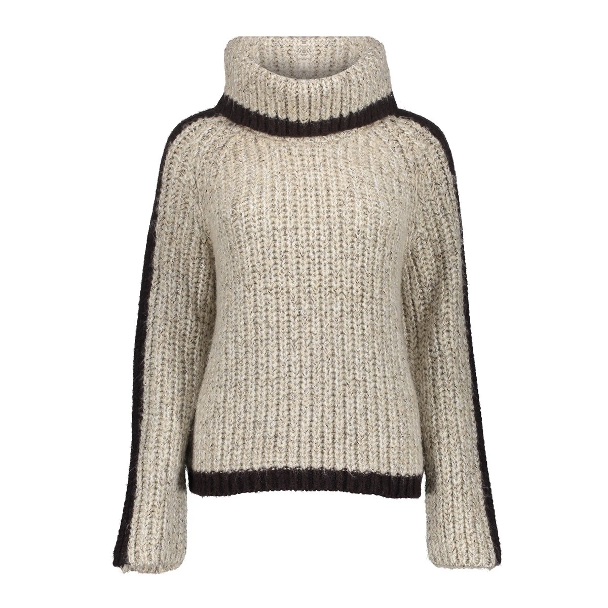 54562-23 720 Geisha Pullover stripe at sleeve sand melange/brown