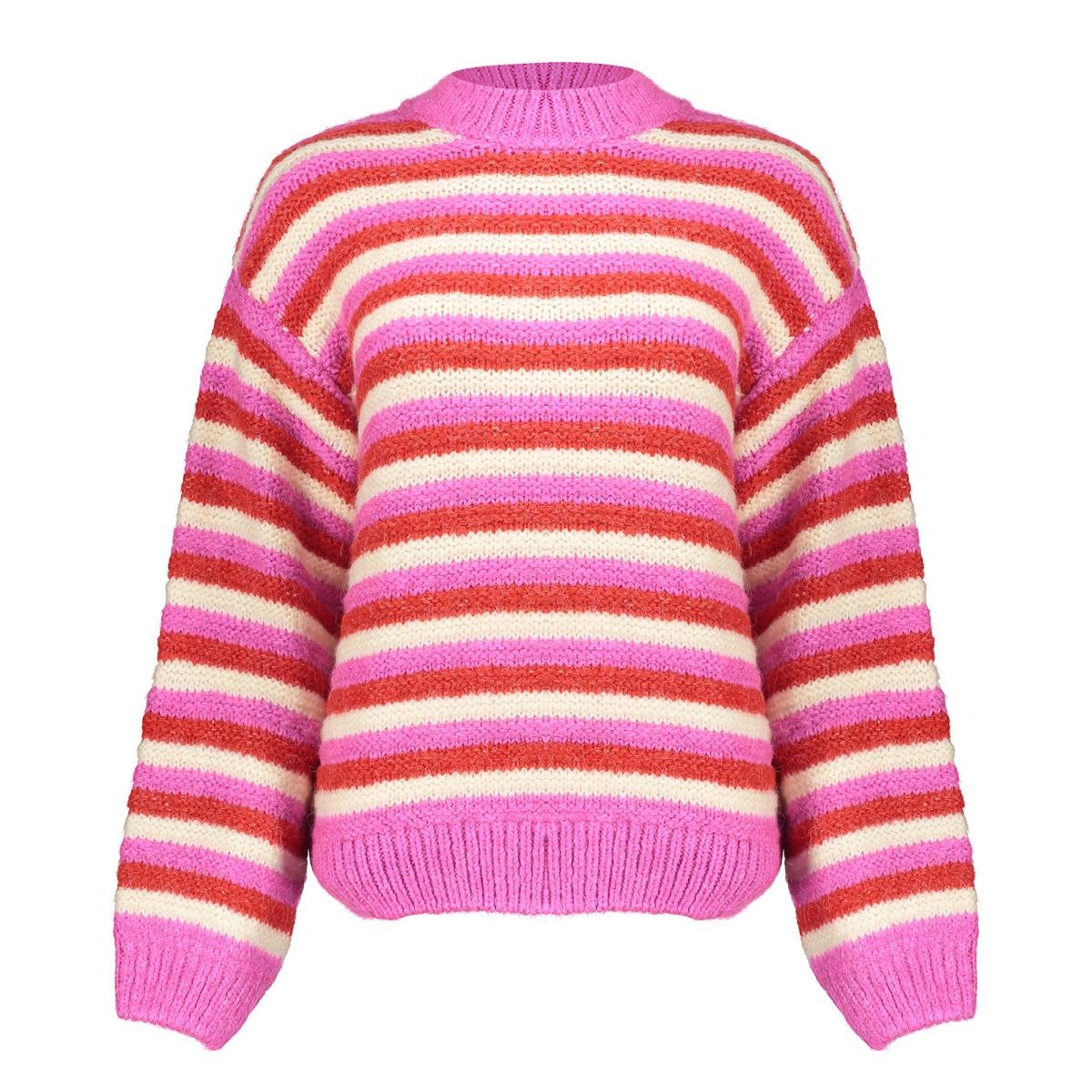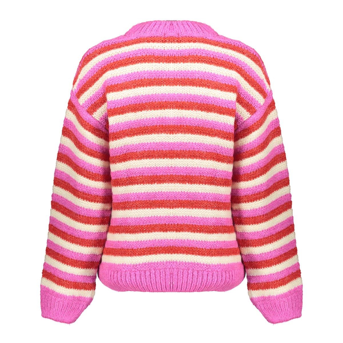 54565-23 420 Geisha Pullover loose knit stripes pink/red/off-white