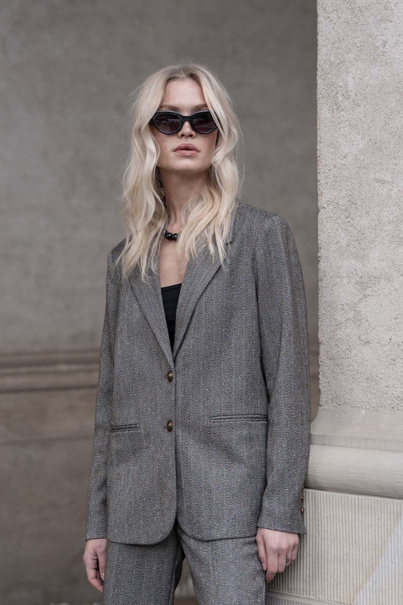 55522-10 950 Geisha Blazer herringbone + stones anthracite stones