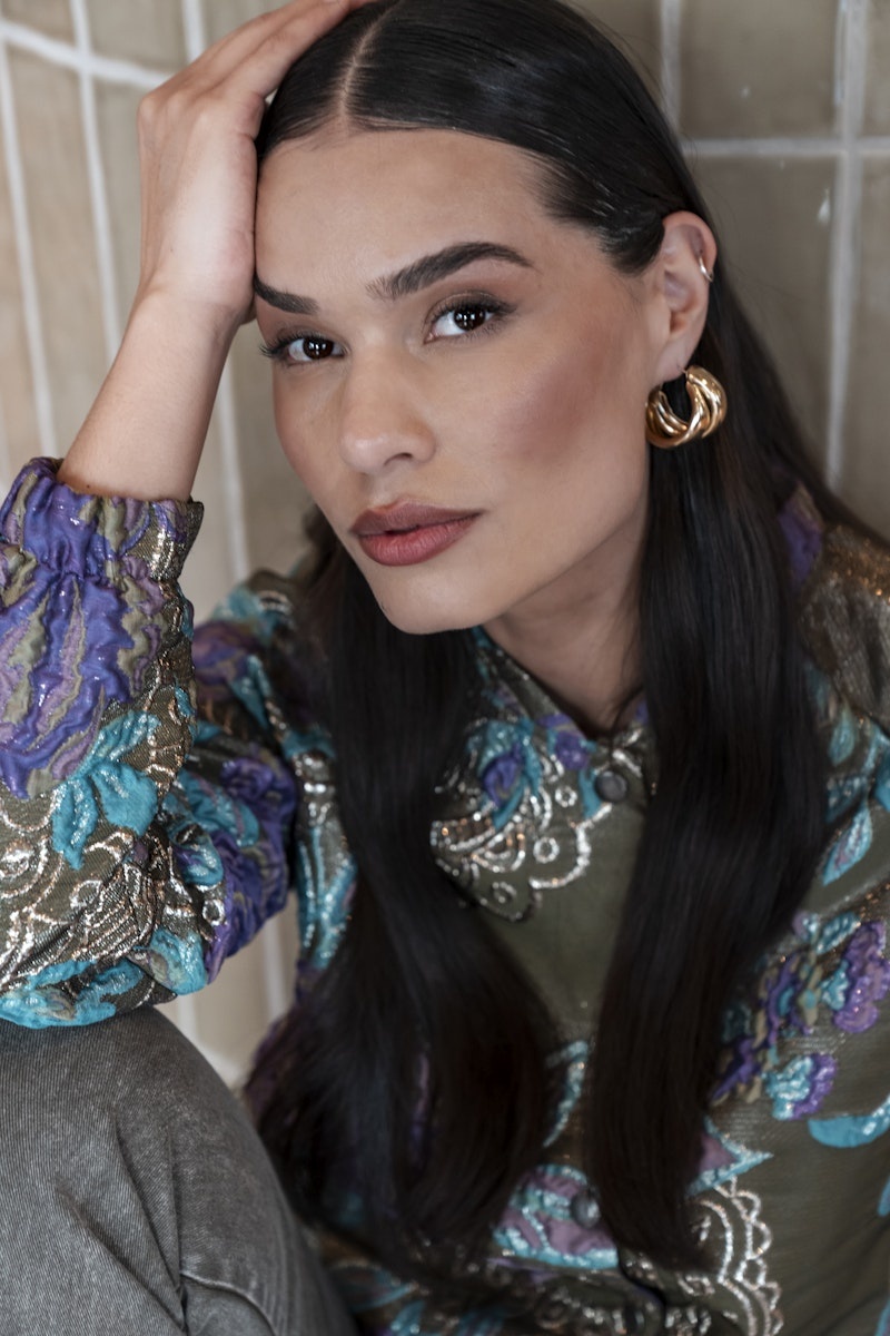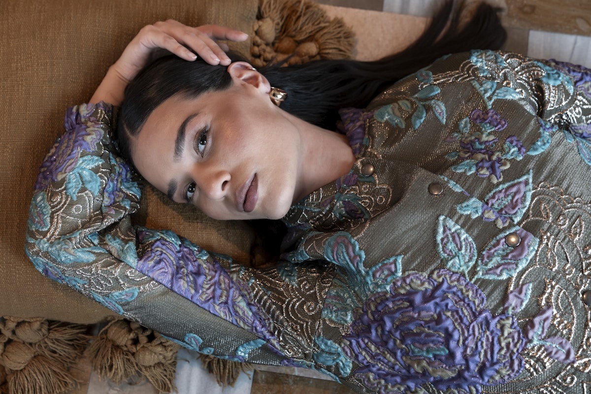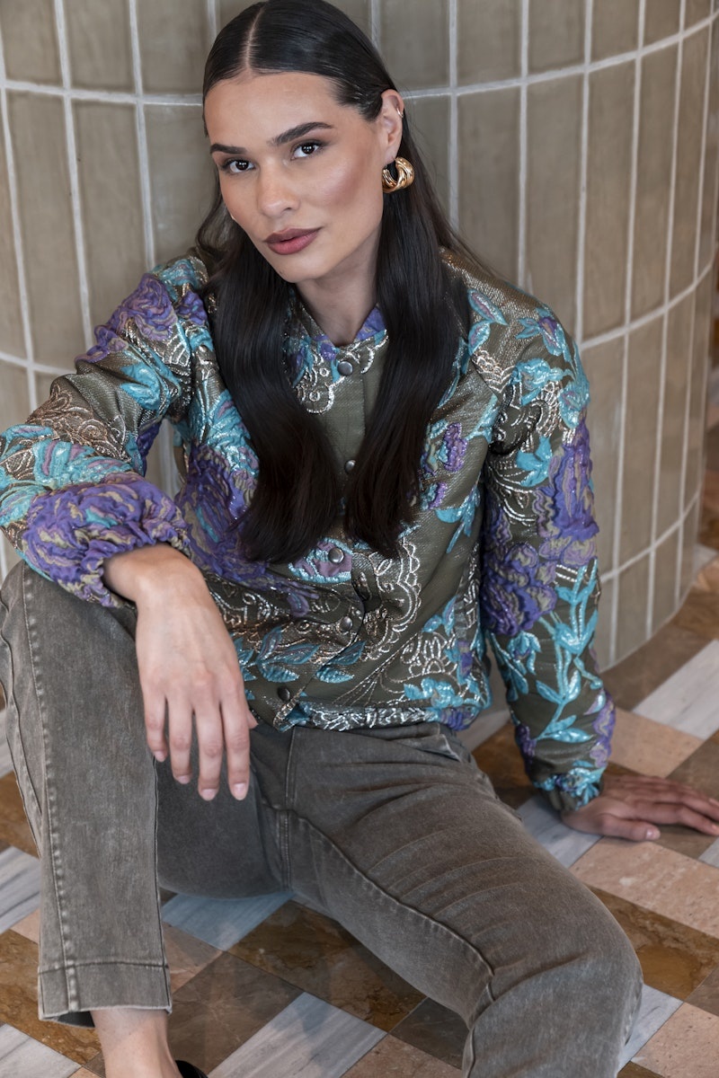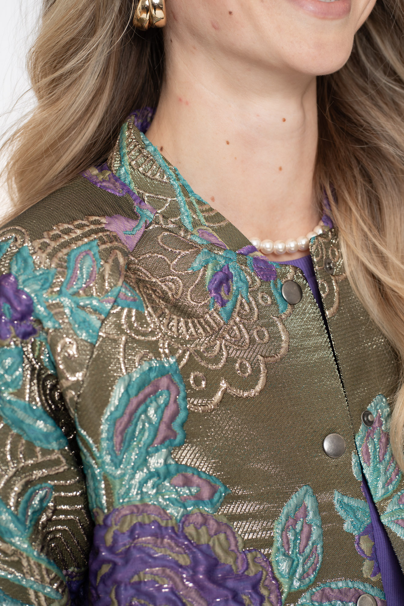 55713-20 530 Geisha Jacket flowers lurex green/purple