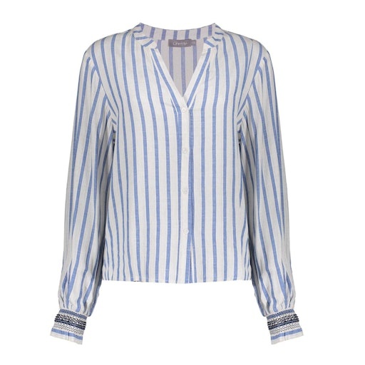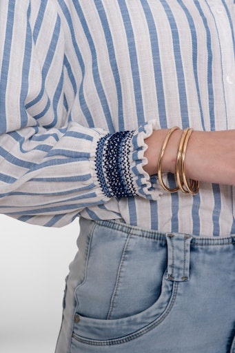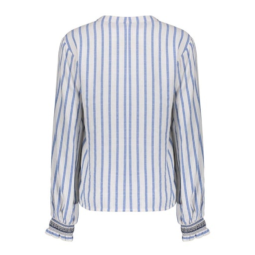 63130-99 010 Geisha Blouse striped embroiderd cuffs off-white/blue