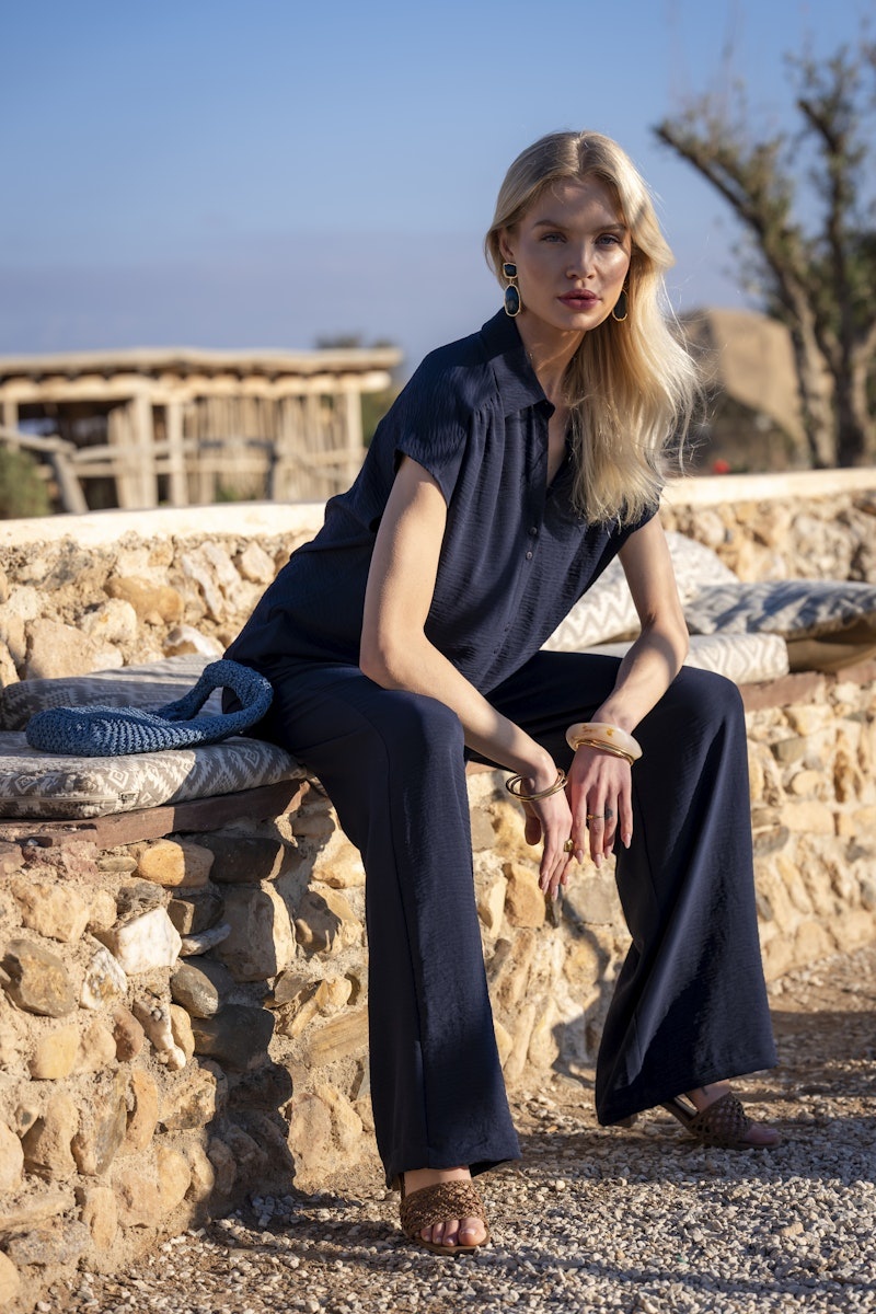 Geisha 63140-21 675 Geisha Blouse crinckle navy