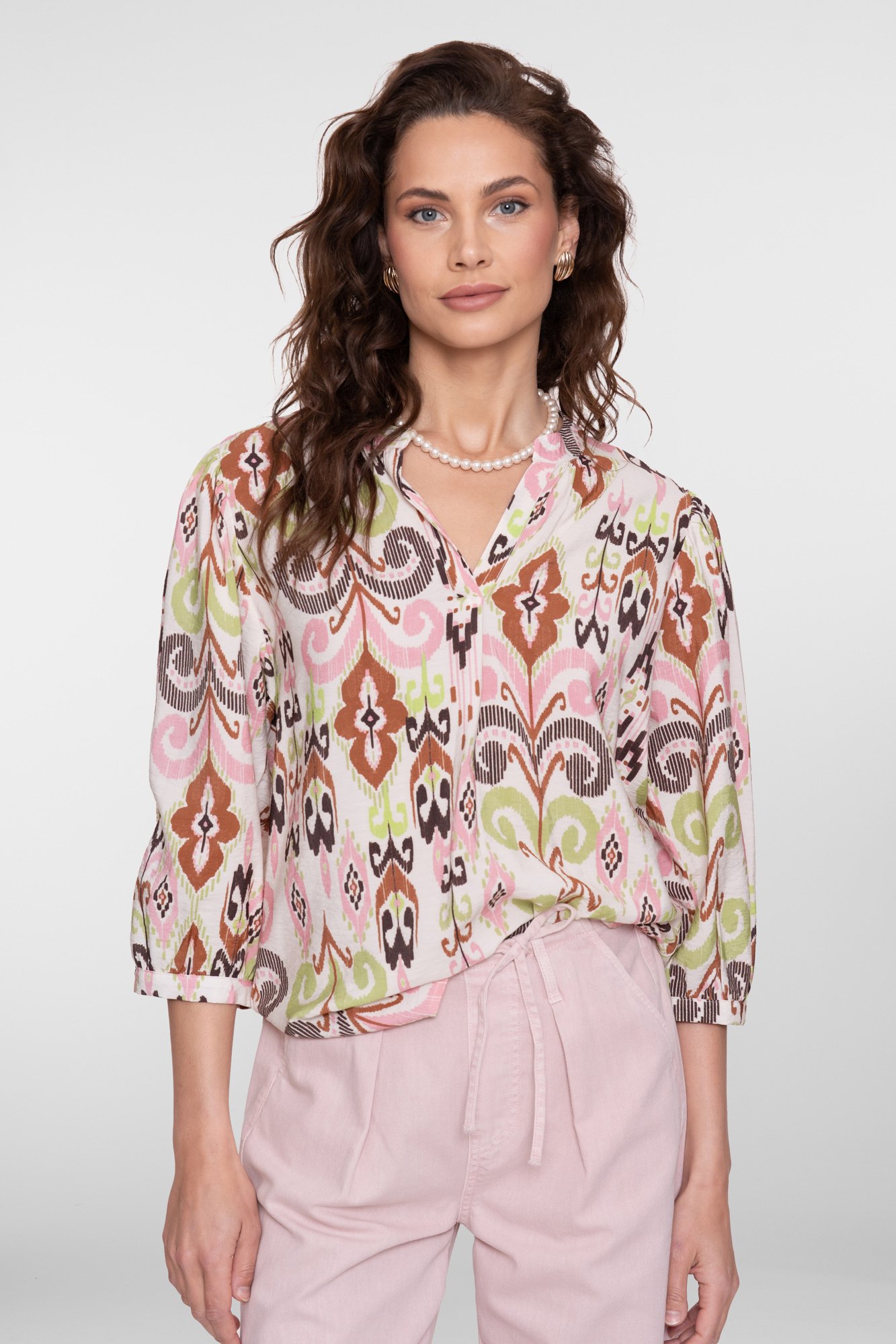 63218-20 718 Geisha blouse ecru/camel/cactus