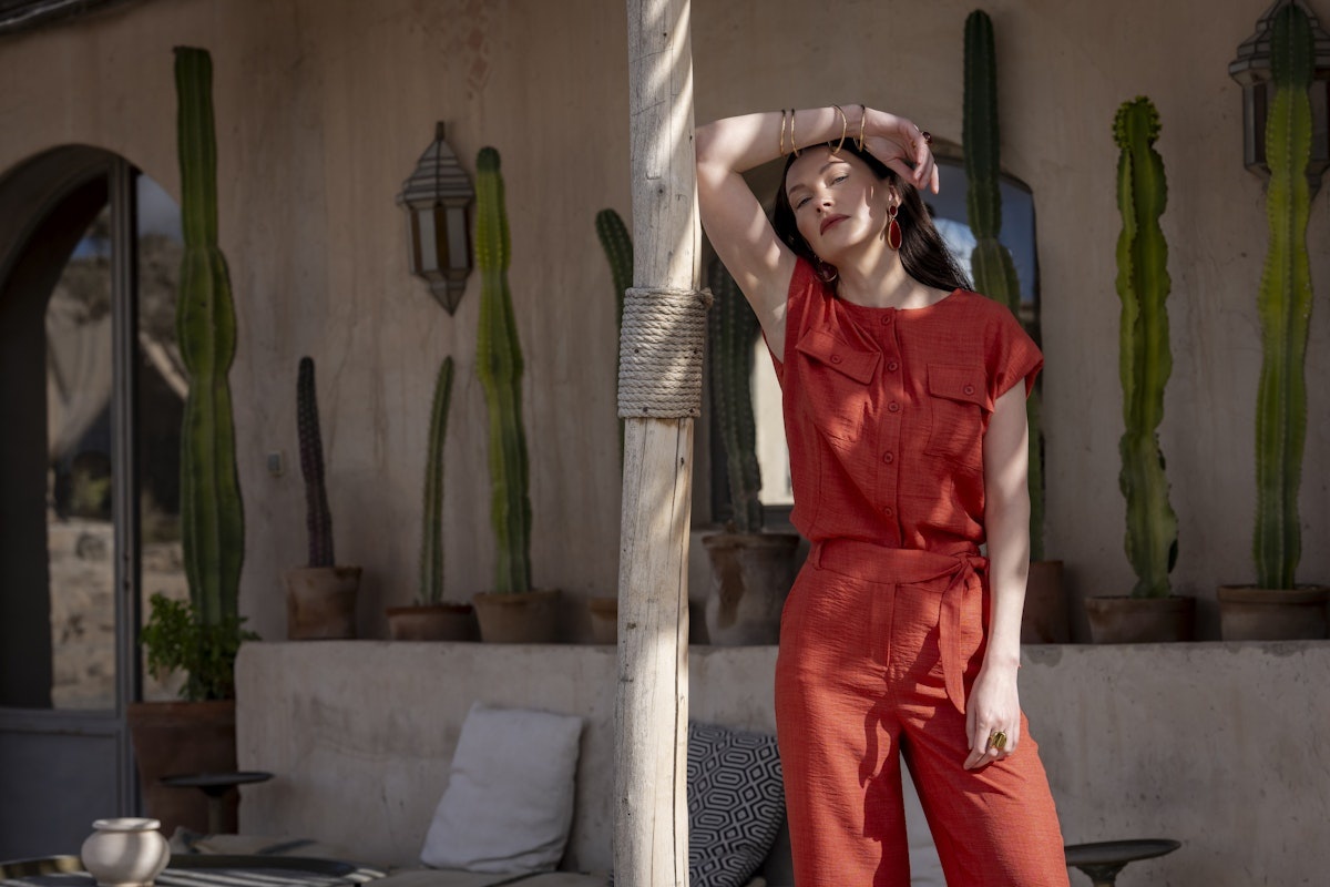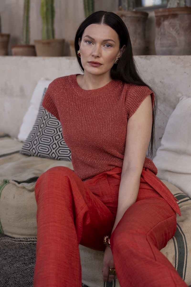 64082-70 743 Geisha Pullover lurex sleeveless stone red/gold