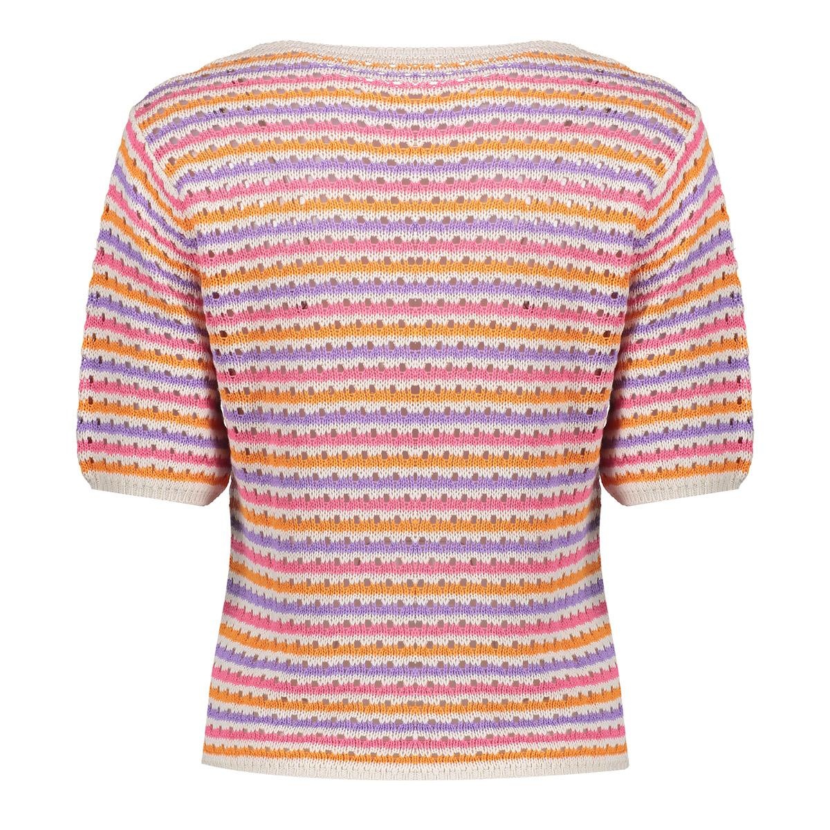 64088-70 718 Geisha Pullover multi col stripe s/sl ecru/purple/orange/cyclame
