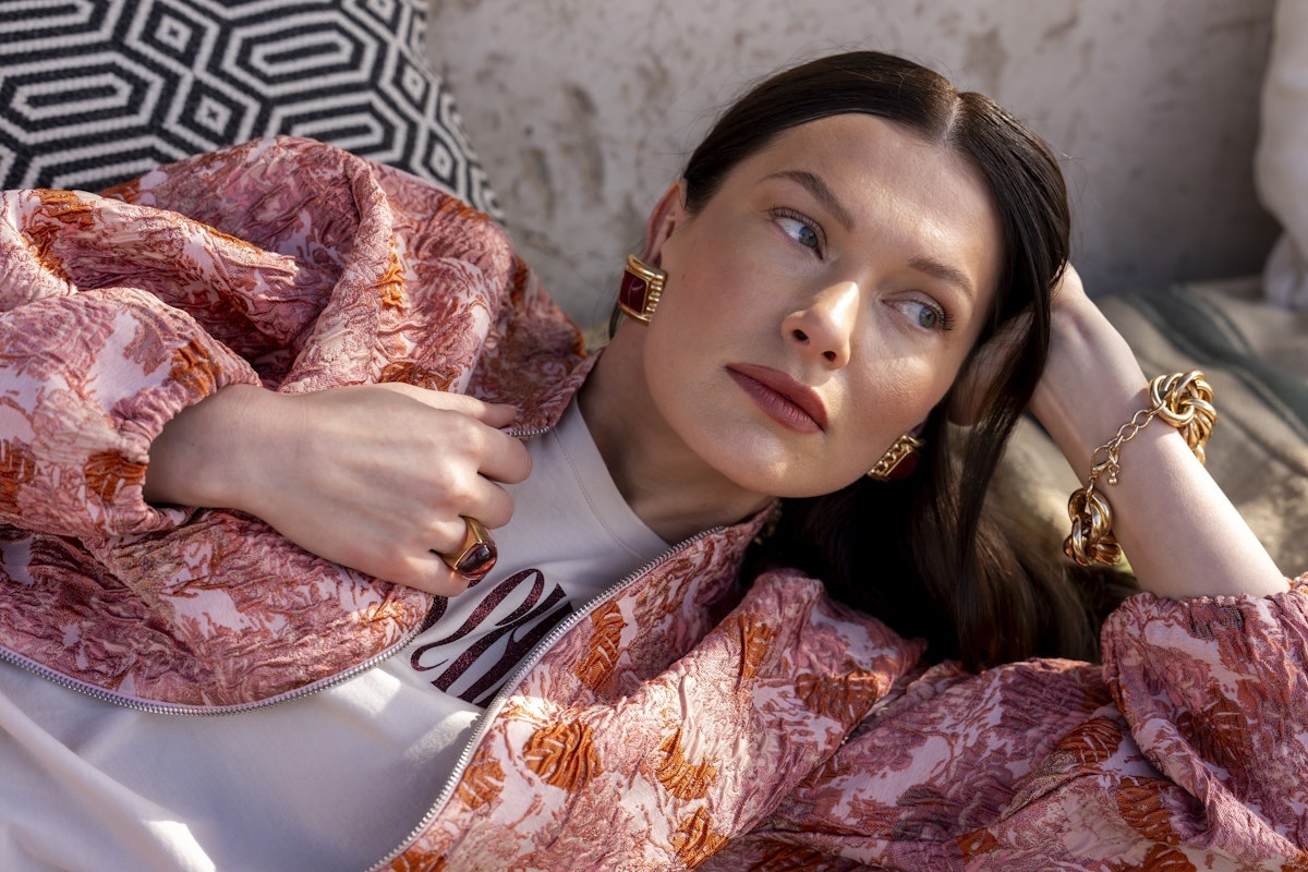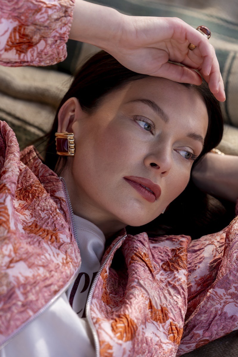 64093-70 010 Geisha Spencer striped off-white/cherry red