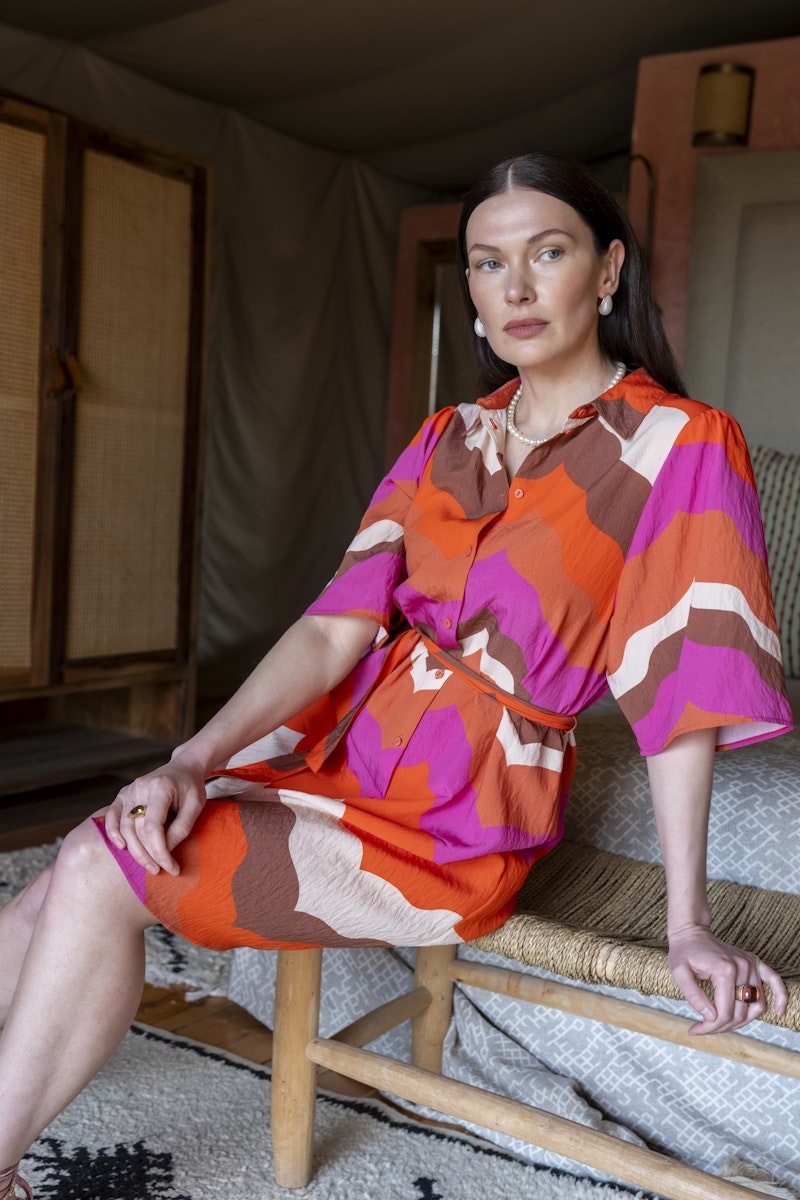 67103-20 718 Geisha dress ecru/brown/cassis