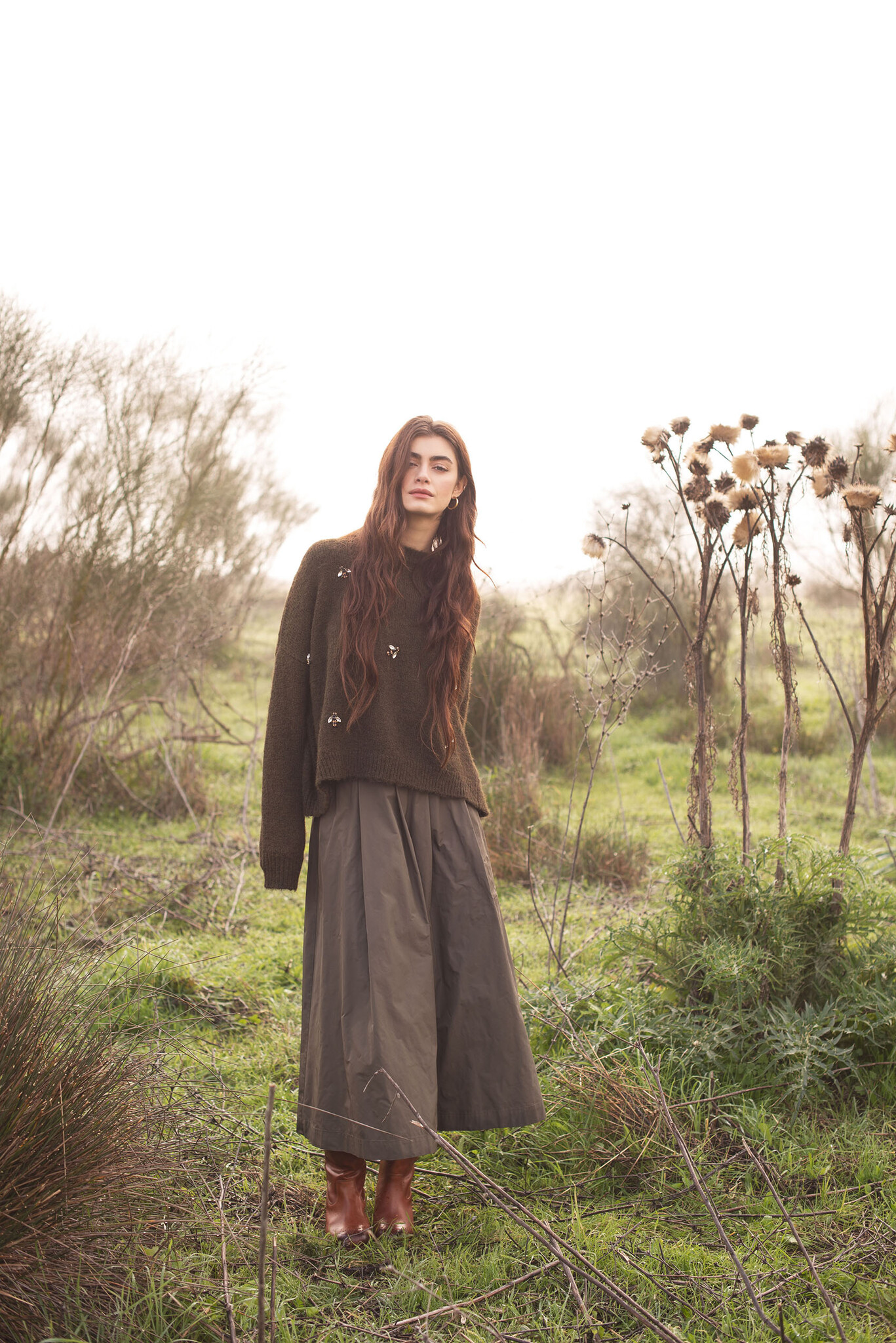 7s7944-7997 655 Summum Embellished sweater cozy melange knit Dark camo