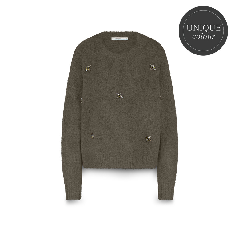 Summum 7s7944-7997 655 Summum Embellished sweater cozy melange knit Dark camo