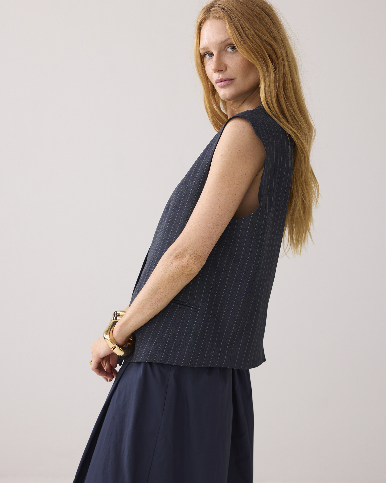 9s137-12258 495 Summum Gilet Pinstripe Midnight blue