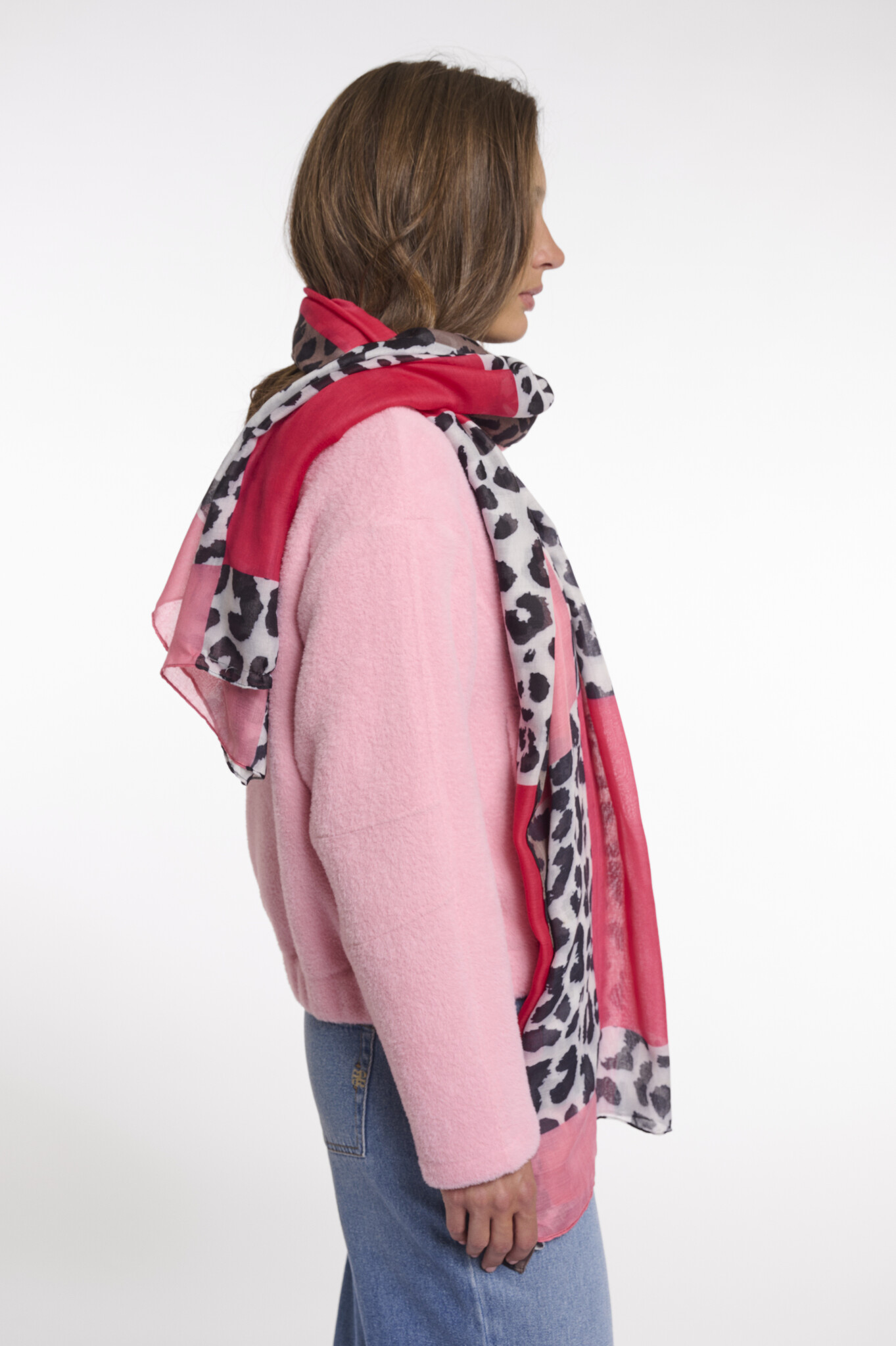 Arva.7002621 Rino & Pelle Colorblok scarf with leopard print Fire leopard
