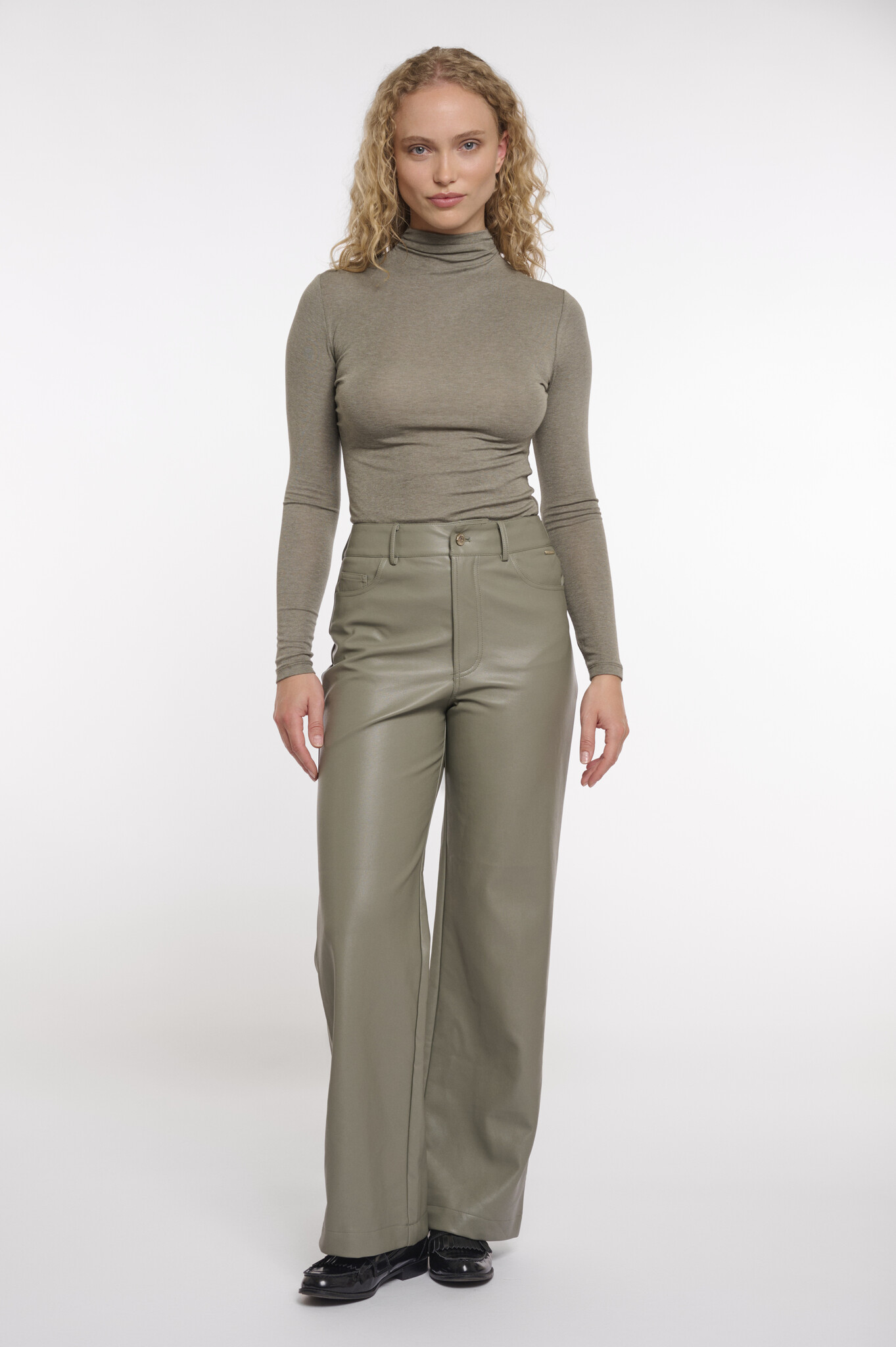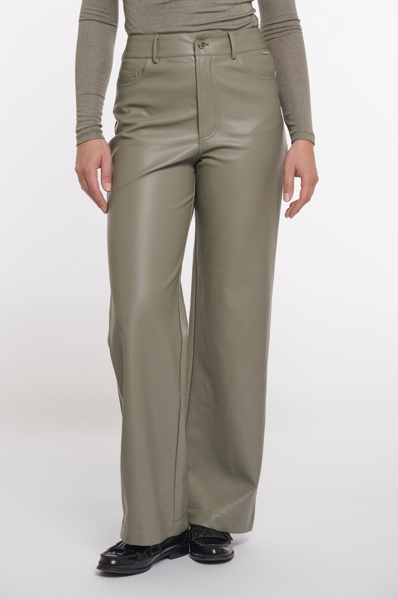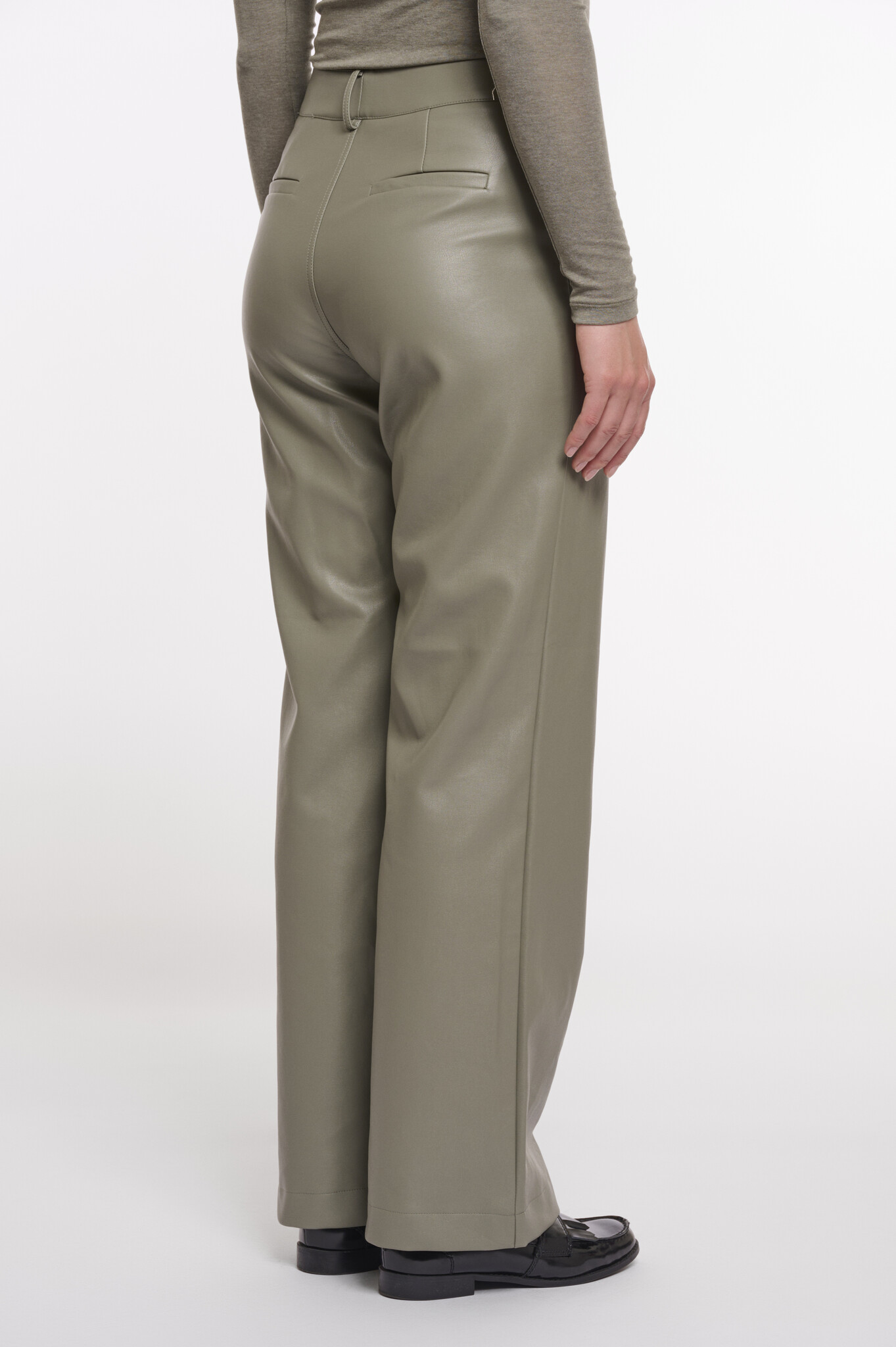 CorianShort.7502511 Rino & Pelle Short length straight leg PU pants Green ash