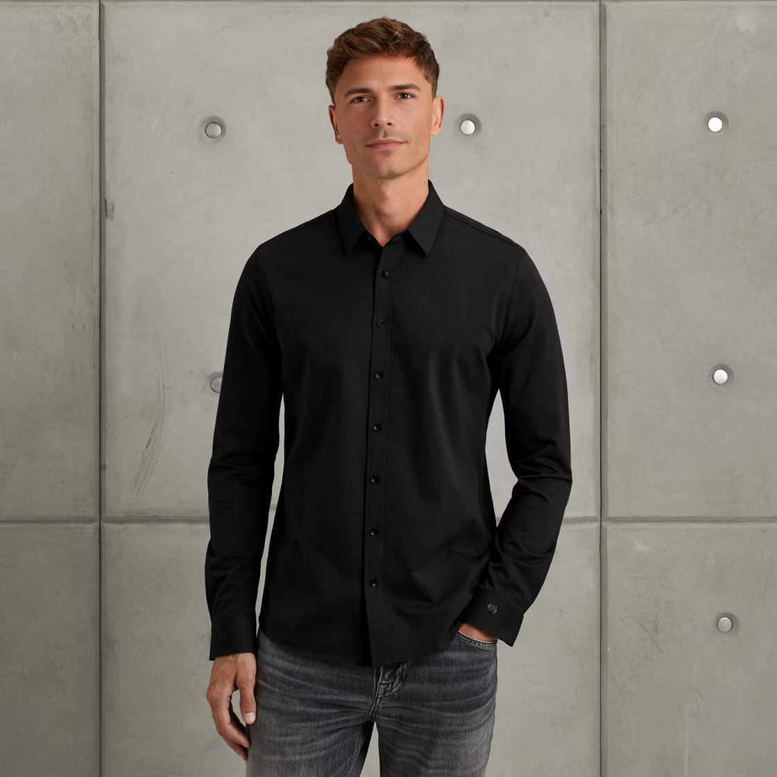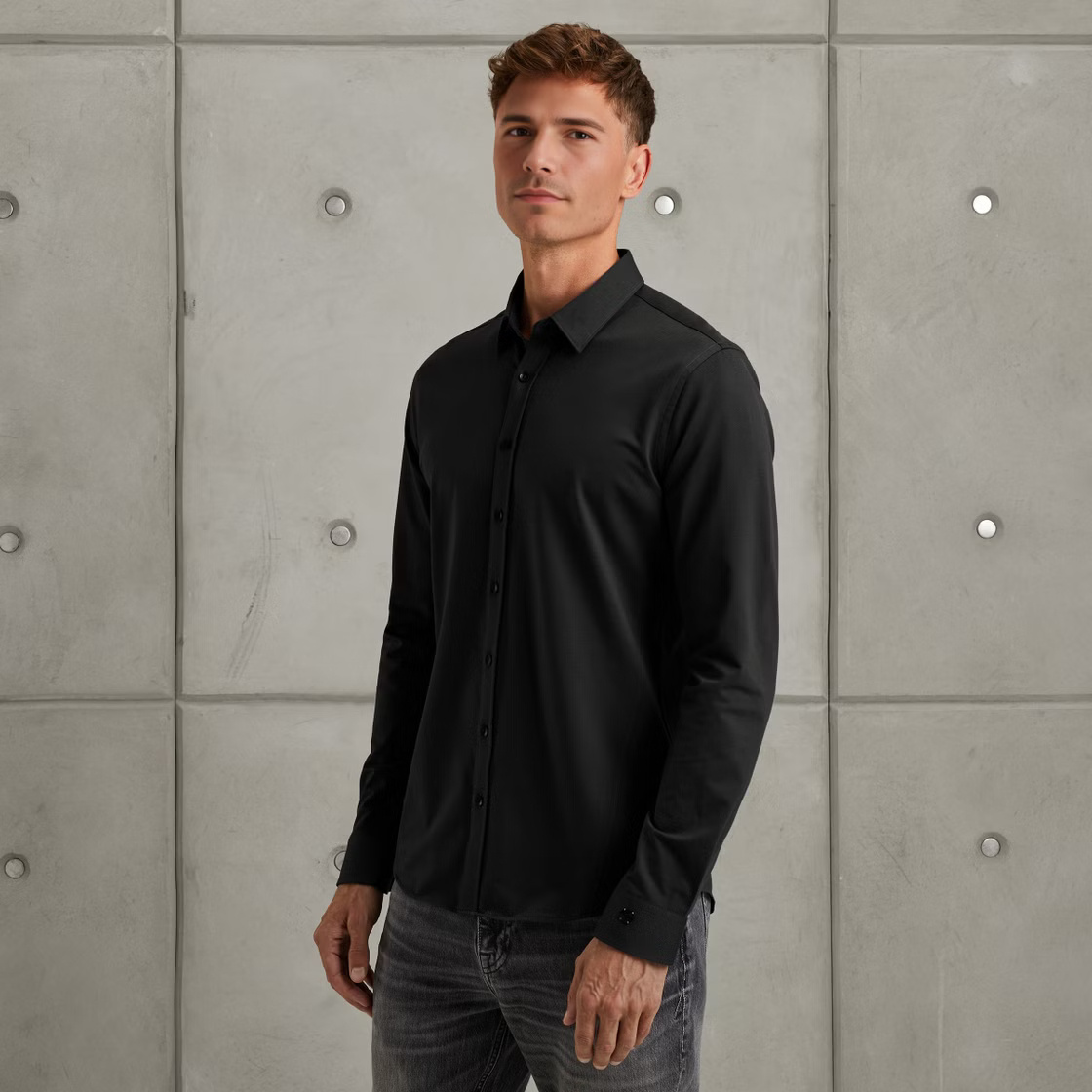 CSI00940 999 Cast Iron LONG SLEEVE SHIRT Twill Jersey 2 tone Black
