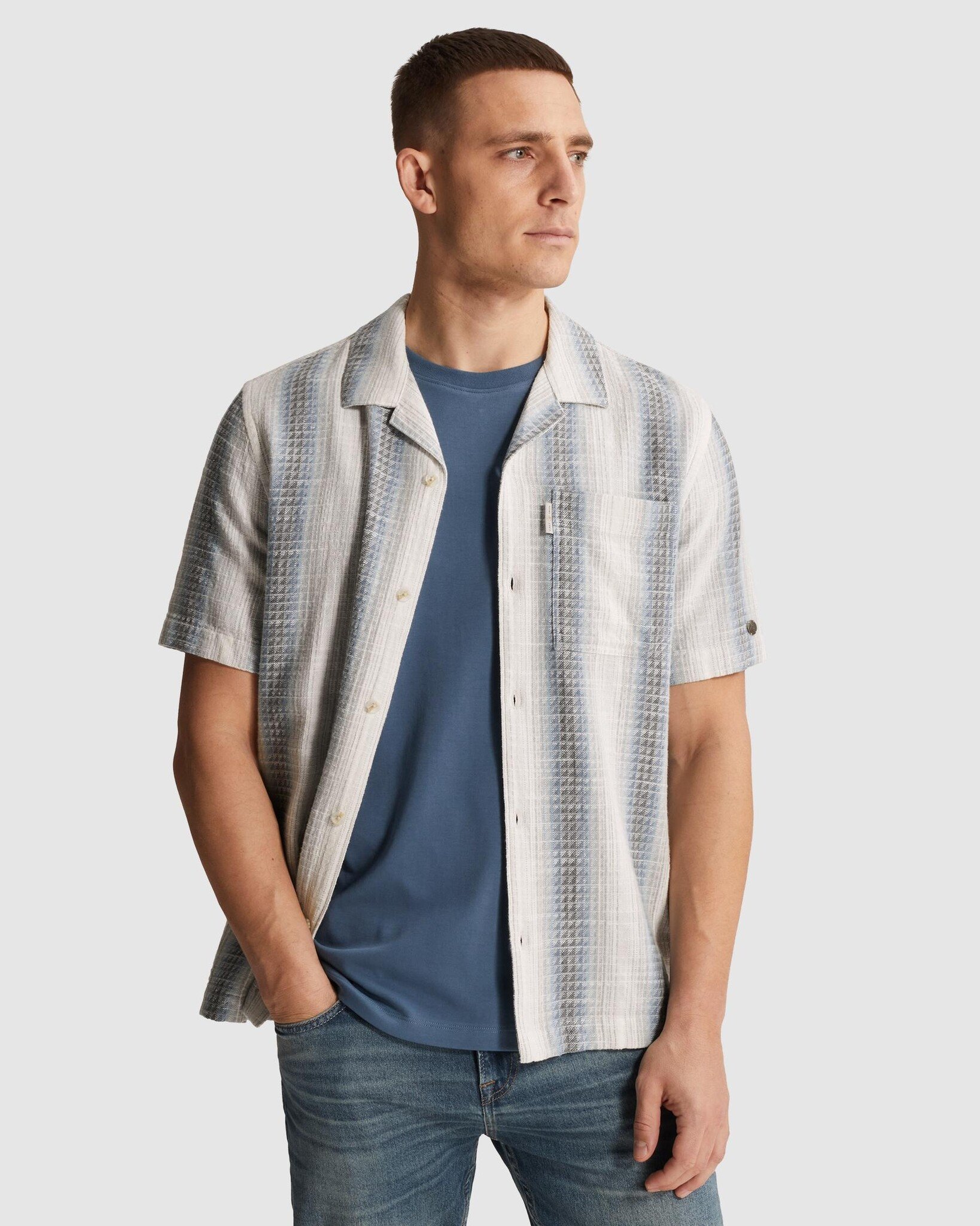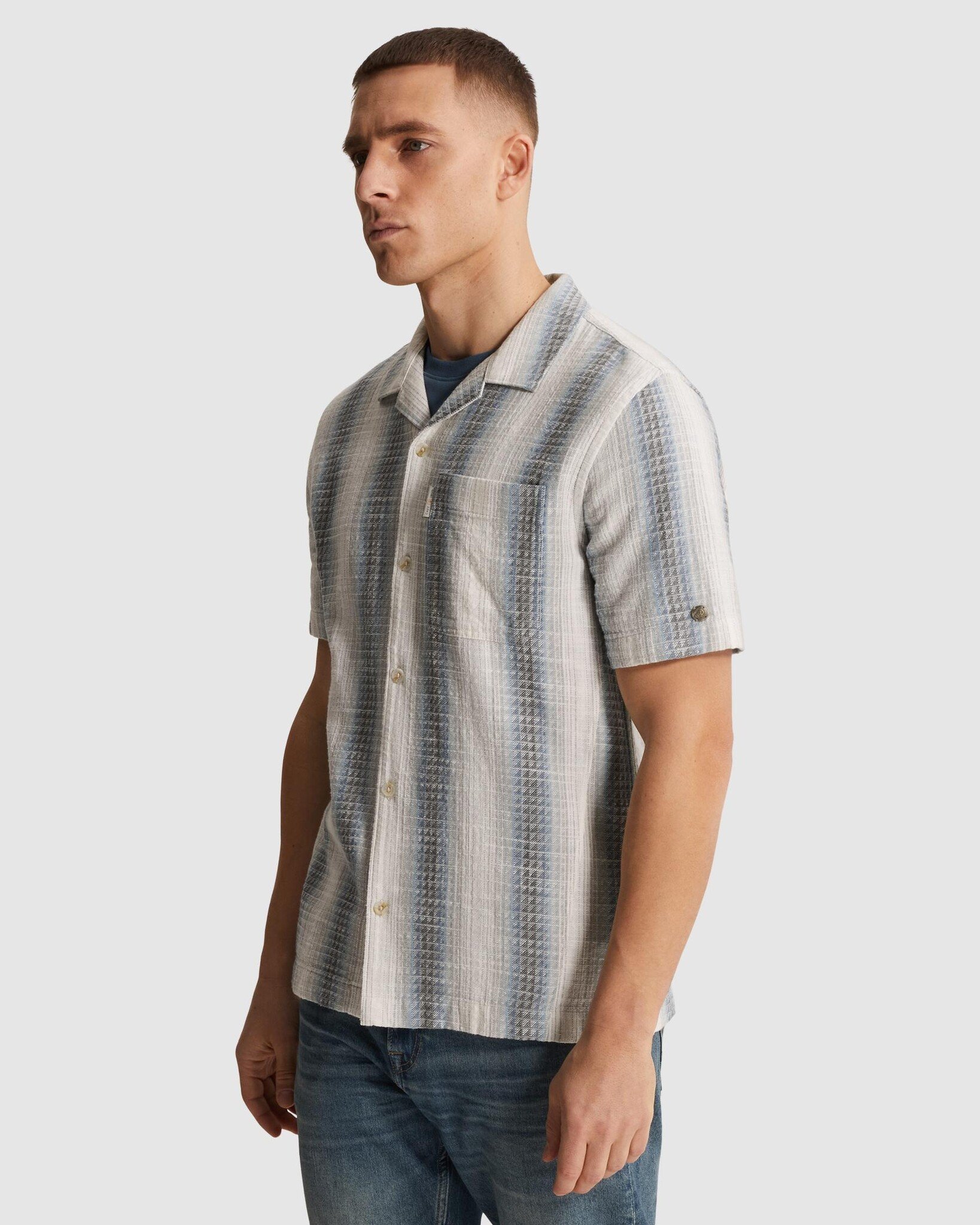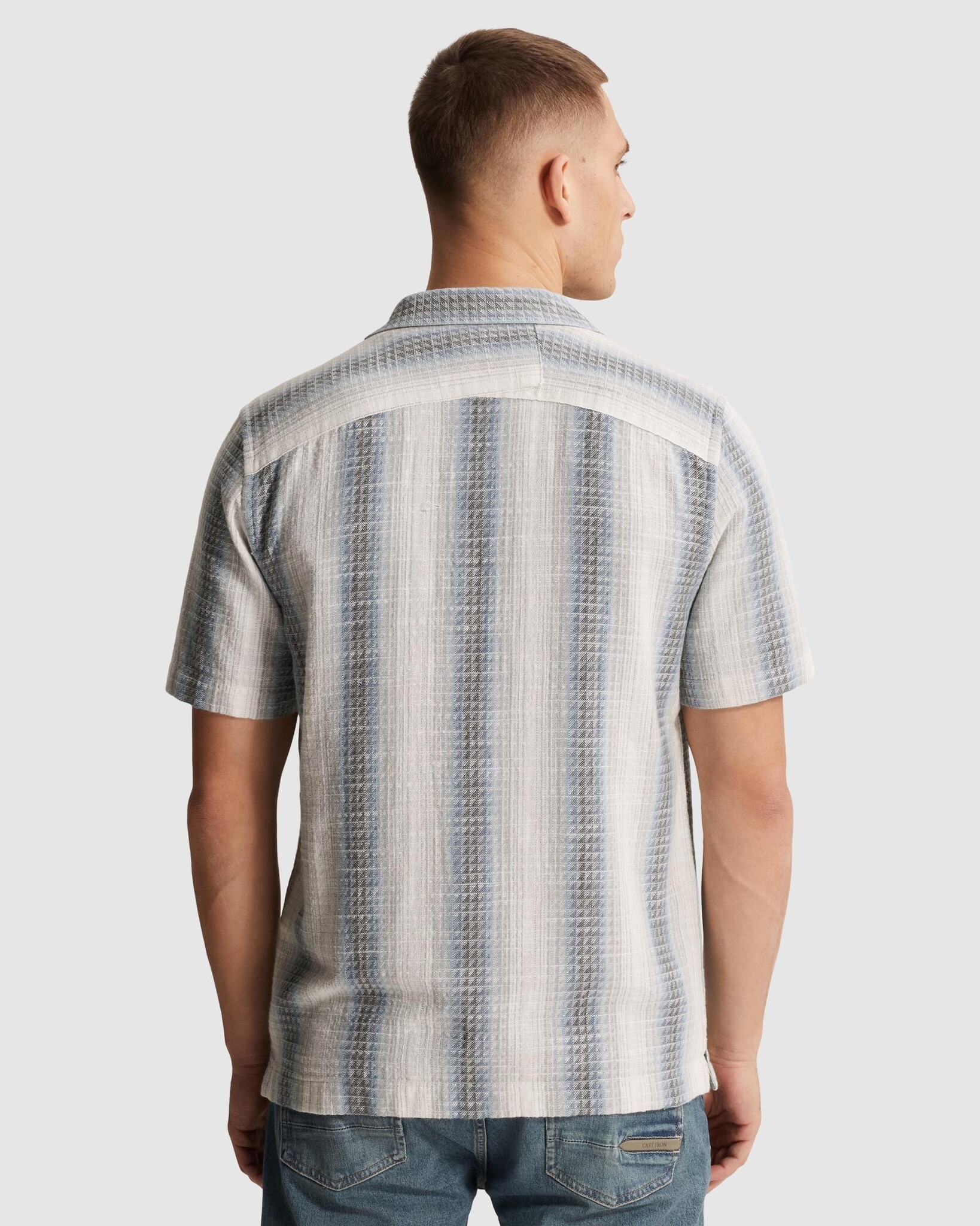 CSIS2604268 5414 Cast Iron Short Sleeve Shirt Yarn dyed stripe structure Oceanview
