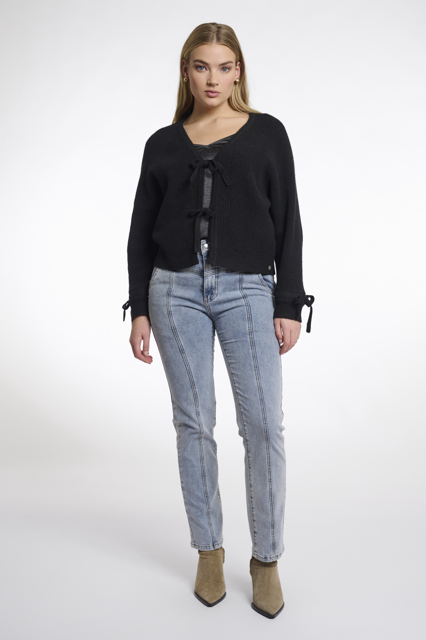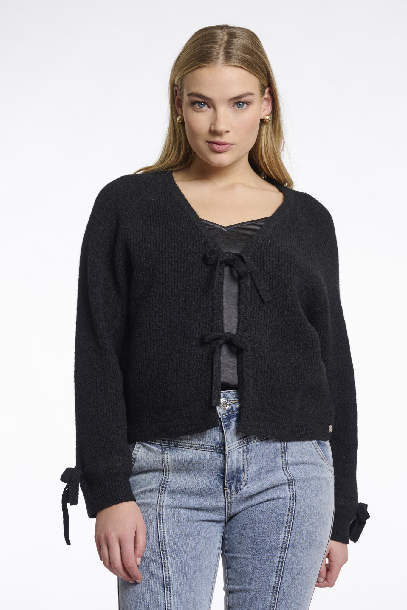 Rino & Pelle Gouke.5002511 Rino en Pelle Knitted cardigan with bows Black