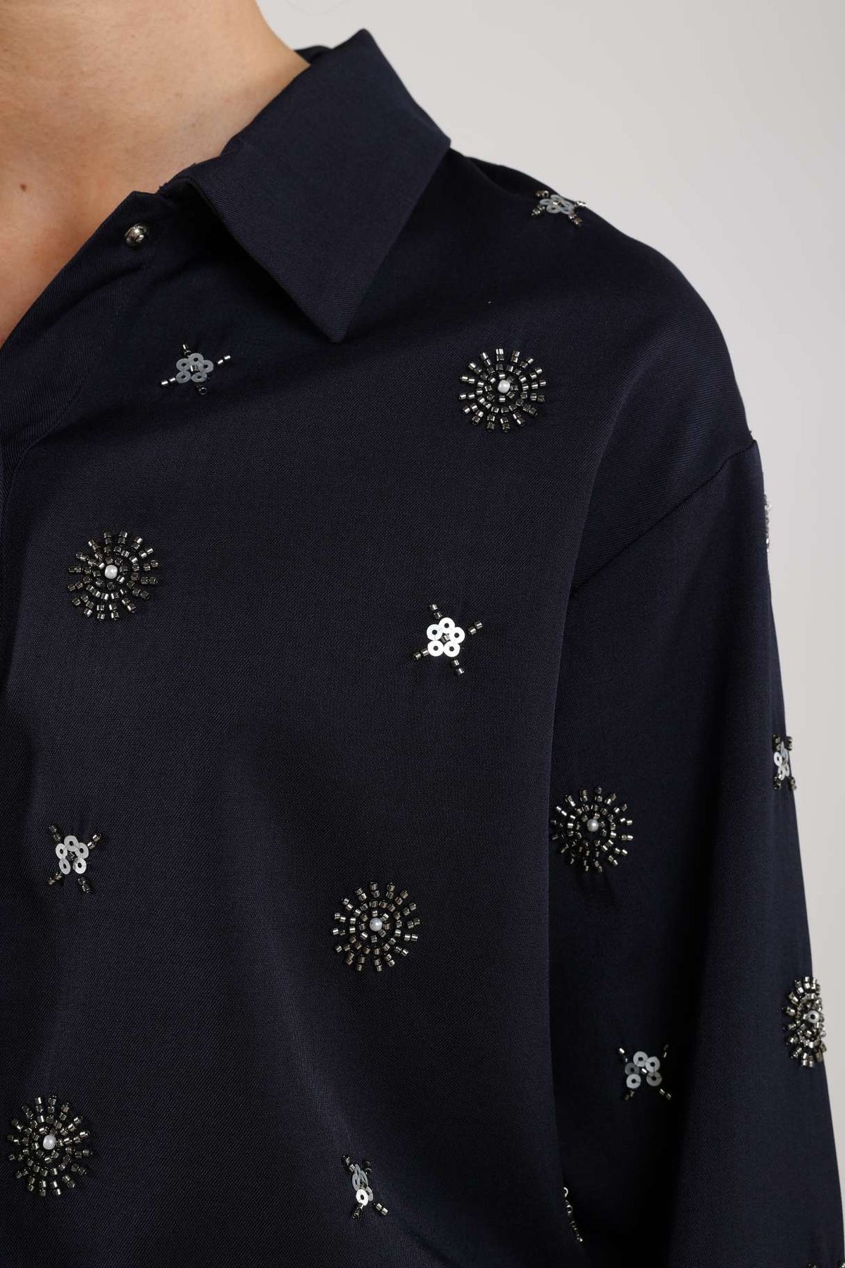 NKF02056 226 Nukus Newport Blouse Embroidery Navy/Silver