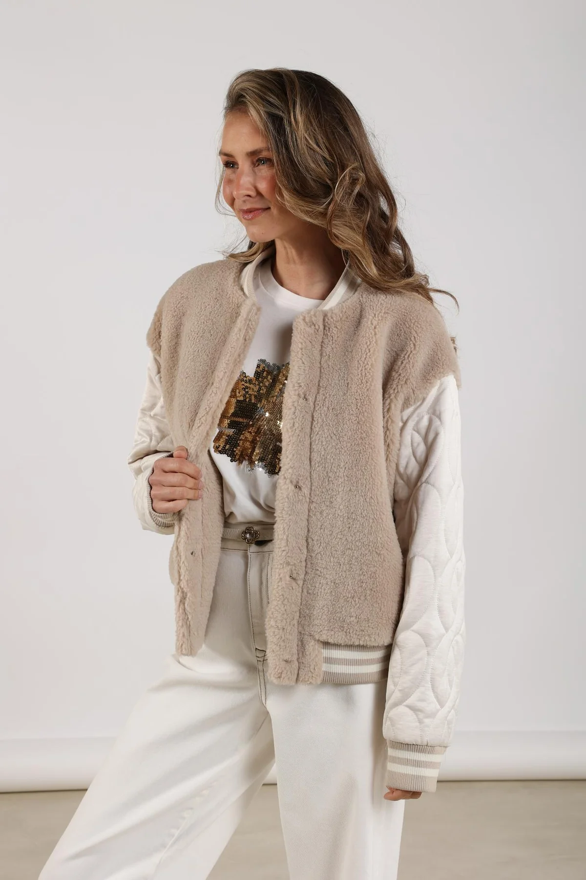 NKF04004 126 Nukus Rimona Shirt Paillet Flower Offwhite/Gold