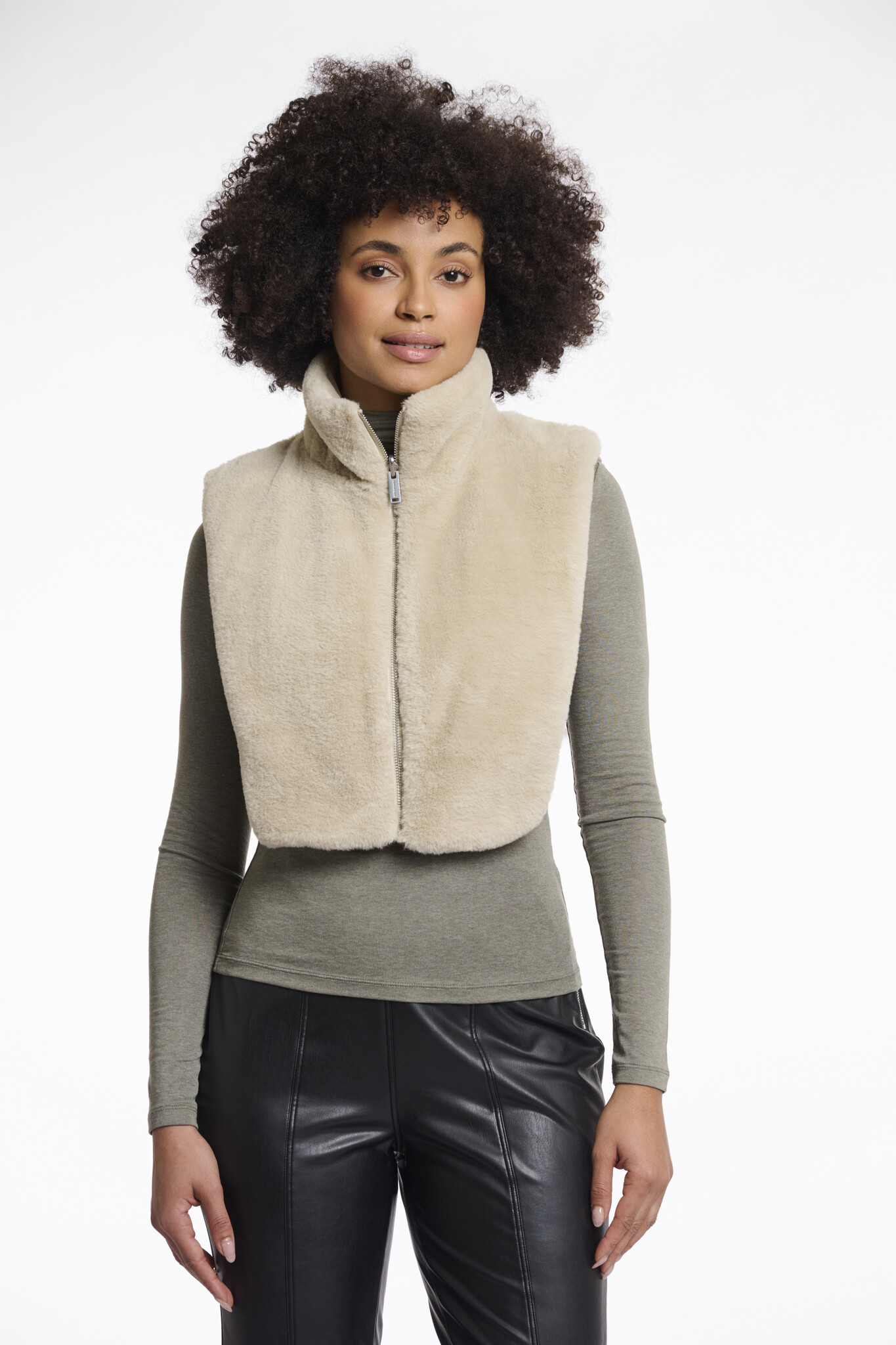 Rino & Pelle Nura.7002512 Rino en Pelle Reversible bib with faux fur Birch