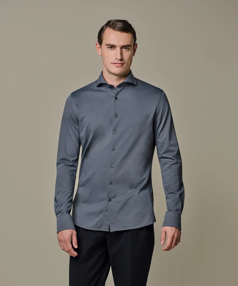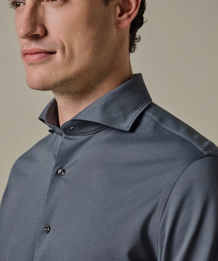 - Mix van katoen en hightech garen voor de elegantie van een overhemd met het comfort van een t-shirt