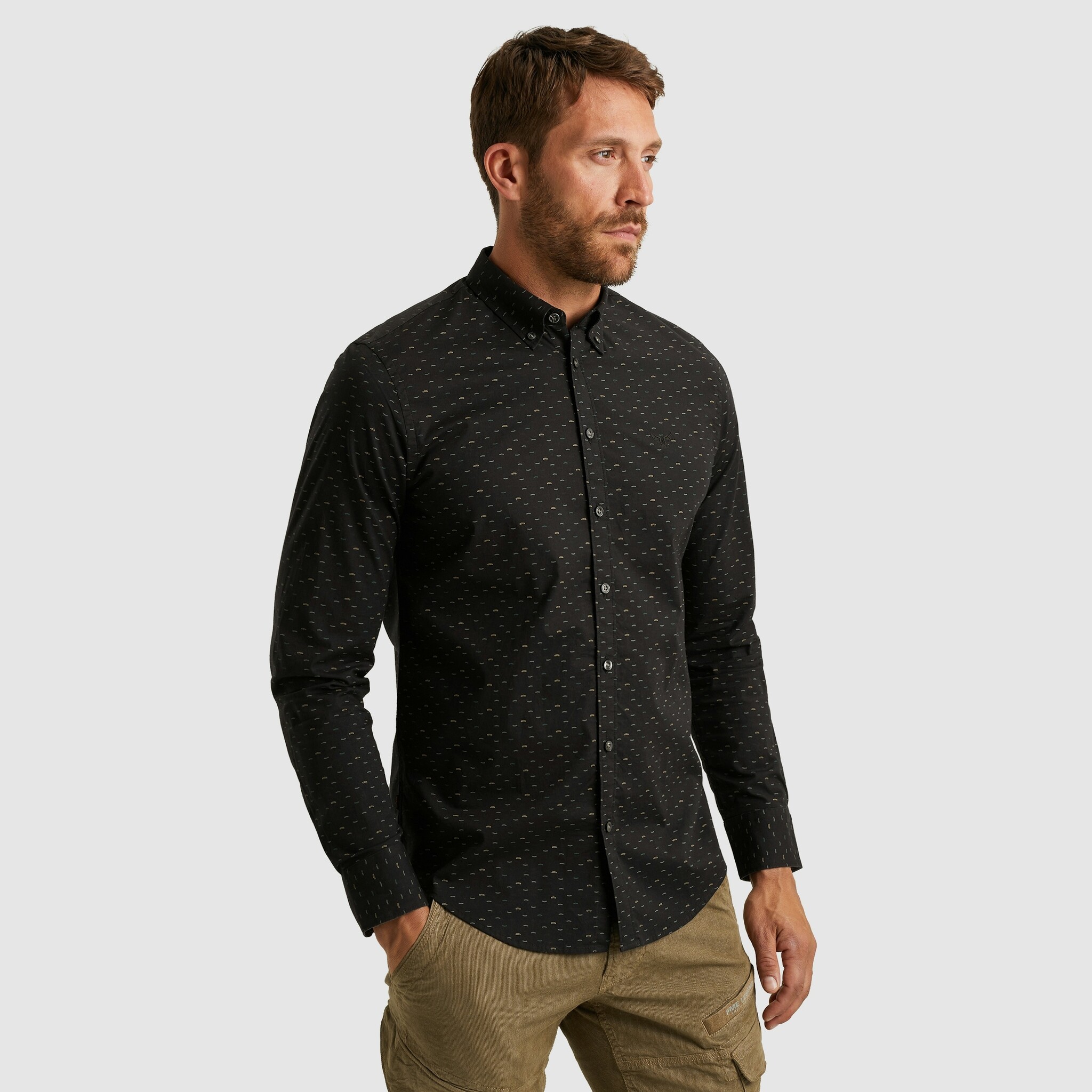 PSI2510238 9067 PME Legend LONG SLEEVE SHIRT Allover print on Poplin stretch Jet Black