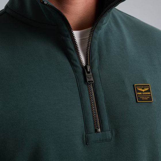 Een perfecte layering piece voor allerlei gelegenheden. Deze PME Legend trui is gemaakt van een zachte interlock jersey. De flight pocket op de mouw en de halve rits geven dit item de PME Legend look en feel, die nog beter tot zijn recht komt in combinatie met een stoere jeans. De kenmerkende PME Legend details zorgen voor de finishing touch.