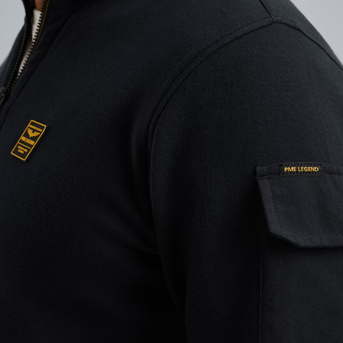 Een perfecte layering piece voor allerlei gelegenheden. Deze PME Legend trui is gemaakt van een zachte interlock jersey. De flight pocket op de mouw en de halve rits geven dit item de PME Legend look en feel, die nog beter tot zijn recht komt in combinatie met een stoere jeans. De kenmerkende PME Legend details zorgen voor de finishing touch.