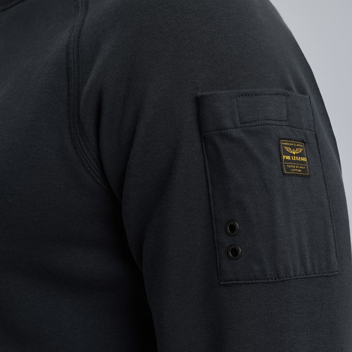 Dit PME Legend sweatshirt is gemaakt van een comfortabele katoenblend en is aan de binnenkant gebrushed voor extra warmte en draagcomfort. Het artwork op de borst en de flight pocket op de mouw geven deze must-have de kenmerkende PME Legend uitstraling. De kenmerkende PME Legend details zorgen voor de finishing touch.