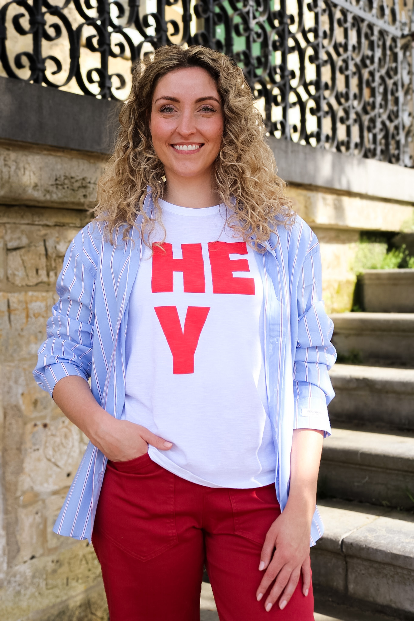 64093-70 010 Geisha Spencer striped off-white/cherry red